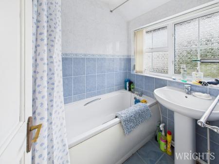 Bath and pedestal sink. Window to the rear elevation.