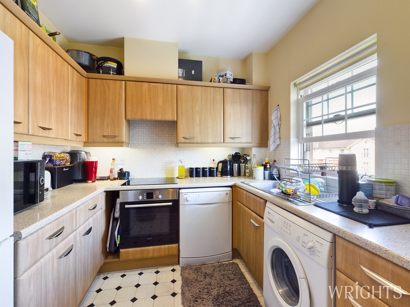 Lovely range of cupboards. A wonderful walnut kitchen with appliances to include; oven with electric hob and extractor. Space and plumbing for washing machine, dishwasher and larder fridge/freezer. Window to front elevation.