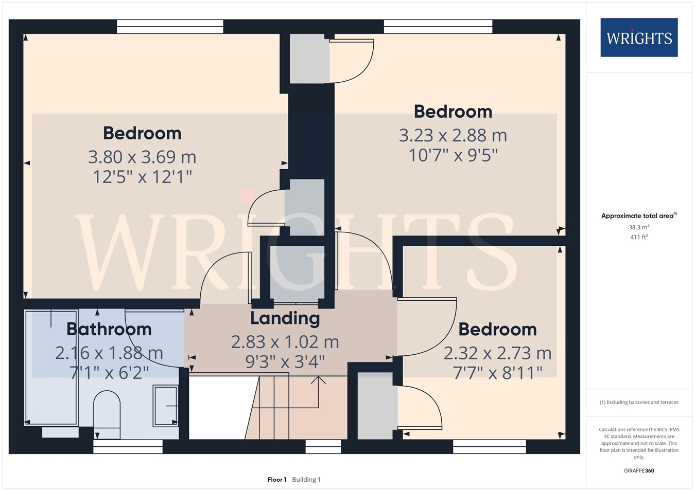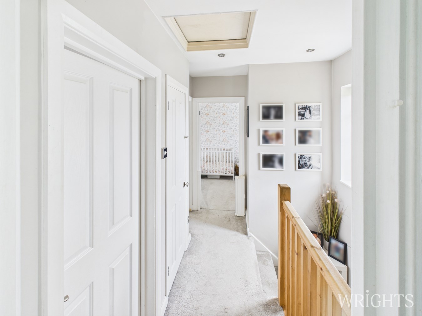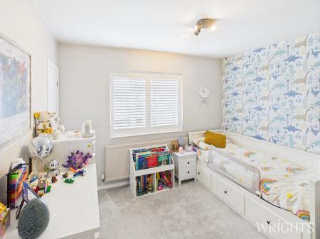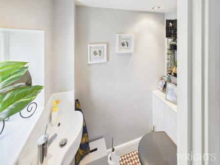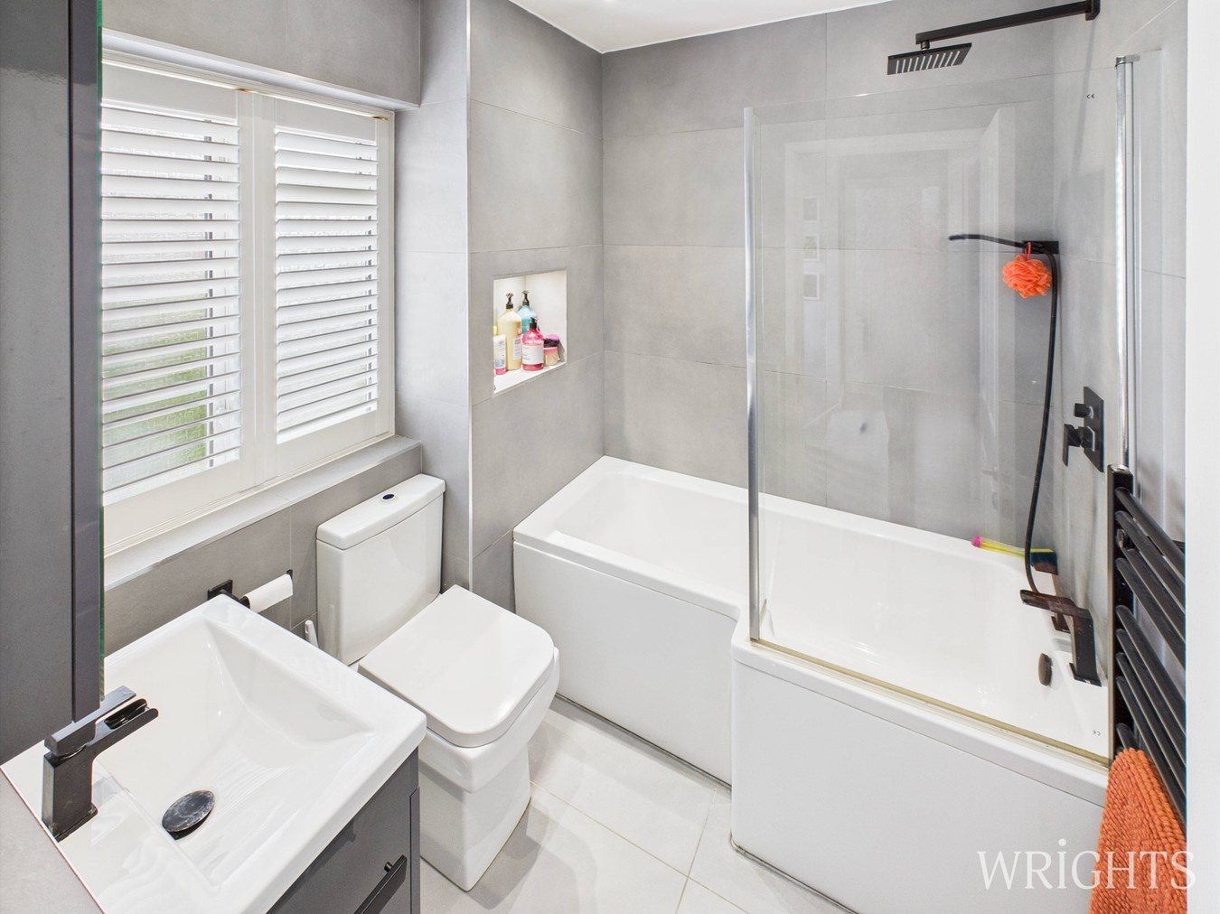 As you ascend the stairs, the well lit landing gives access to a single bedroom with built in storage, a double bedroom with built in storage and the well proportioned principal bedroom, again with the added convenience of built in storage. The family bathroom is sleek and modern with a shower over the bath, basin and toilet, ideal for families.