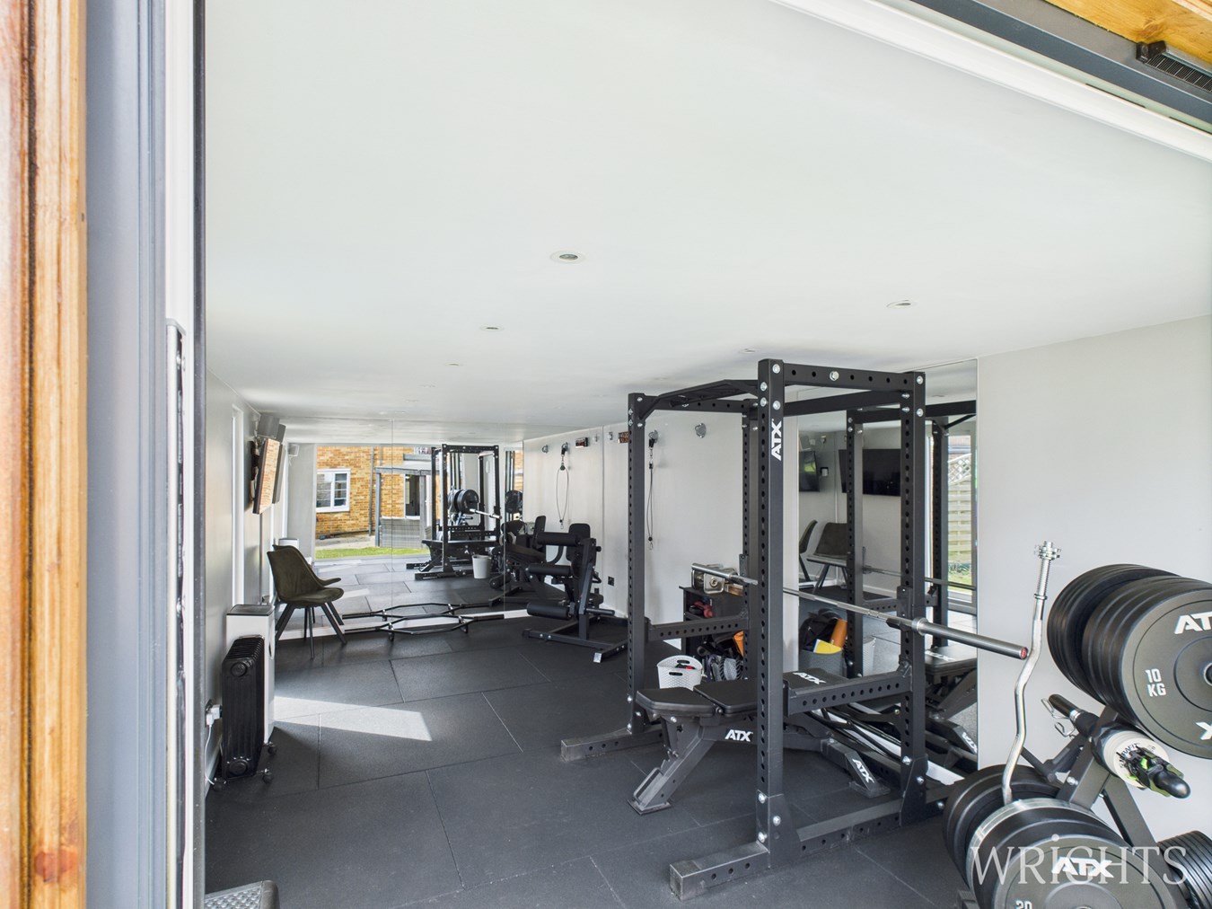 The rear of the property offers a private laid to lawned garden and patio area, ideal for relaxing and entertaining, but the stand out feature is undoubtedly the summerhouse currently used as a home gym or could be used alternatively as an office as there is power and wi-fi already in place.