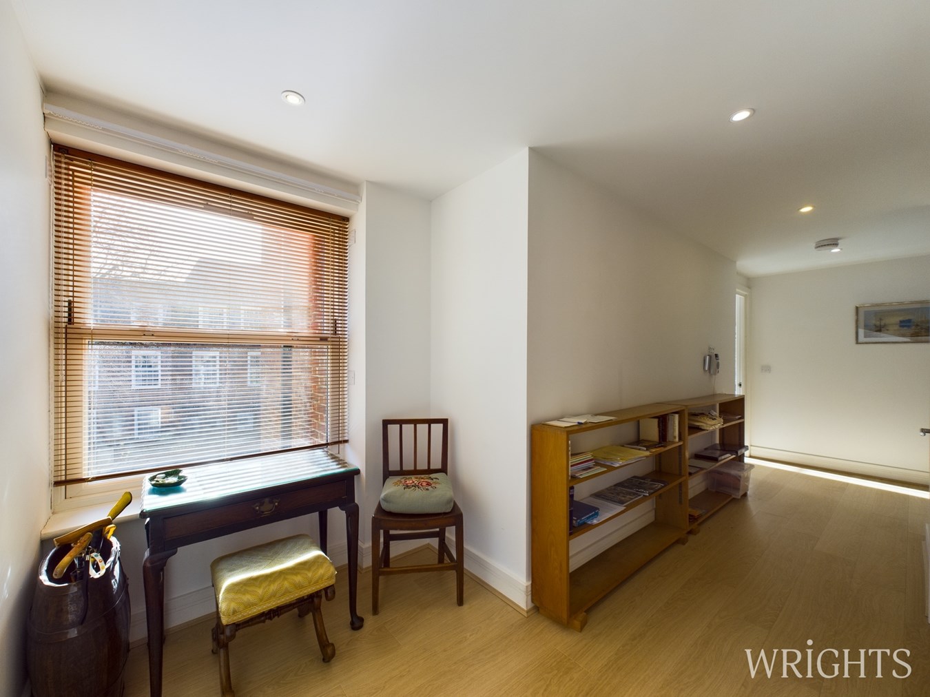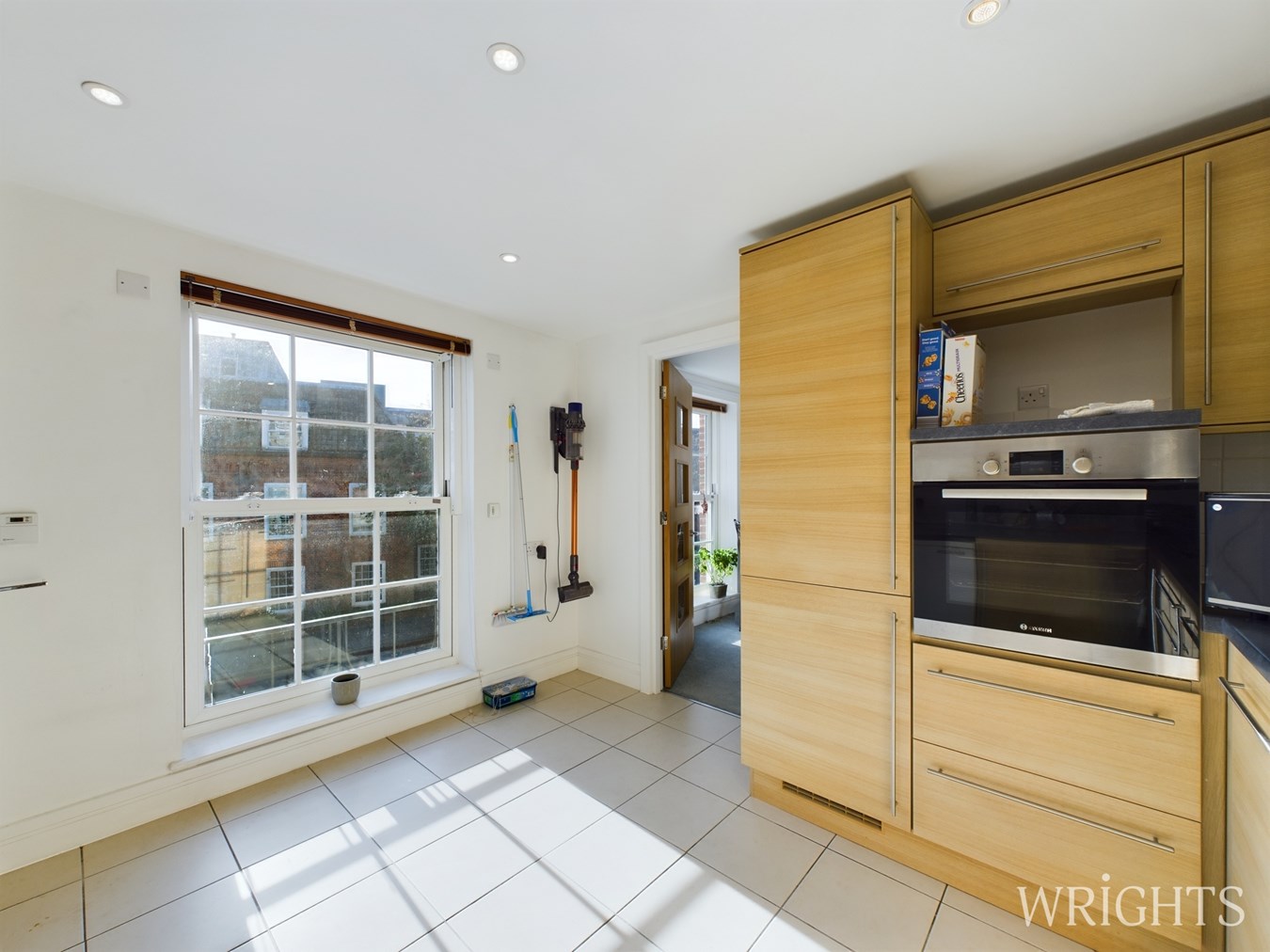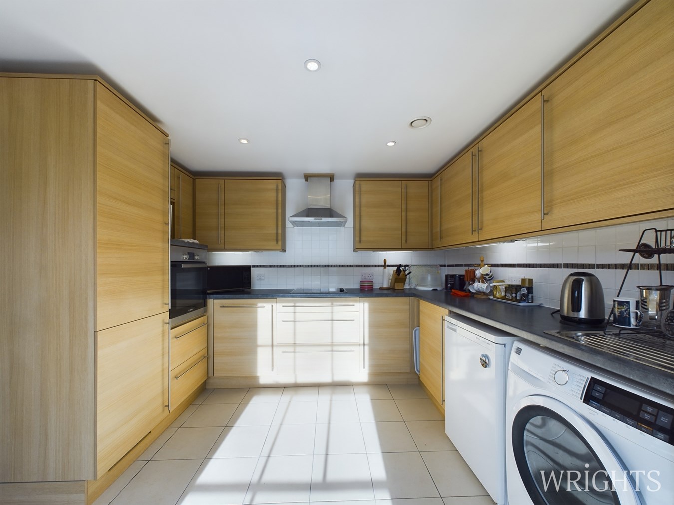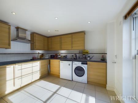A large range of wall and base units. Integrated oven and inset induction hob. Integrated fridge/ Freezer. John Lewis washing and drying machine, dishwasher and freestanding freezer which can be included in the sale. Window to the side elevation and blind.