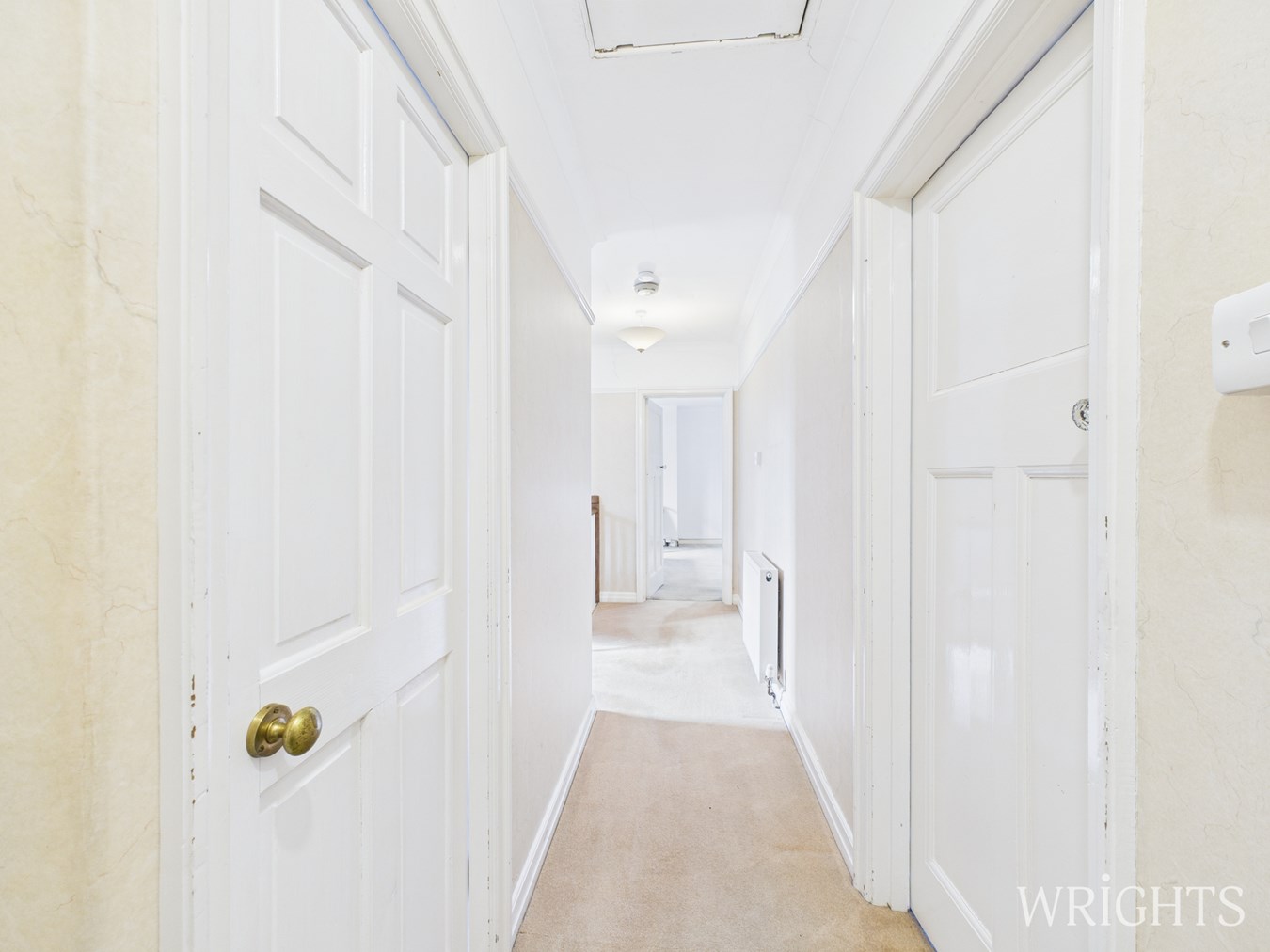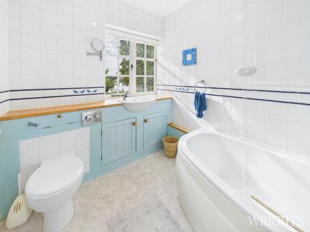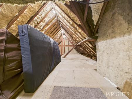 Ascending the stairs, the landing is bright and provides access to four spacious bedrooms which include: two doubles, a generous single bedroom or office, and a dual-aspect prinicpal bedroom that floods with natural light. The family bathroom includes a shower over the bath, basin, and WC. The loft is fully boarded with power, lighting, and ladder access, ideal for storage or future conversion (STPP).