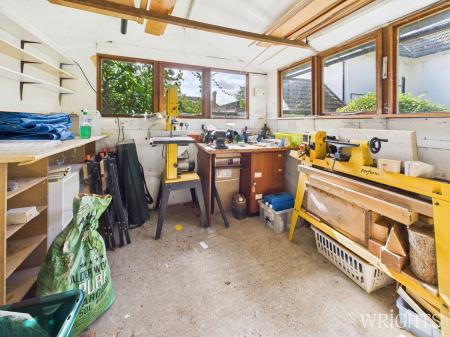 Enjoy a tranquil and scenic stroll through the beautifully maintained gardens. Lovingly tended, the gardens feature established fruit trees and vibrant flower beds, creating a picturesque landscape. The garden extends to a designated potting area, complete with a timber shed for gardening tools and greenhouse. There is a large worksop and additional shed with power supply. There is a handy side access leading out to the front and the garage is a good size for one car. The front garden has also been thoughtfully maintained, and a driveway provides convenient off-street parking.
