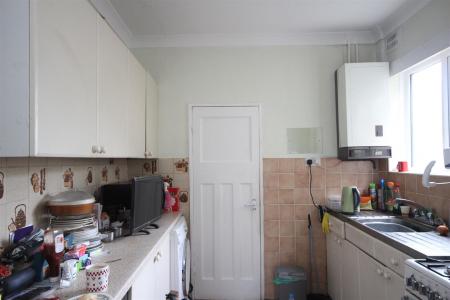 Kitchen - 3.25 x 2.43 (10'7" x 7'11") - Sink with double drainer with cupboards below with a further range of base and eye level units, work surface, gas cooker points,plumbing for washing machine, radiator, window to side.