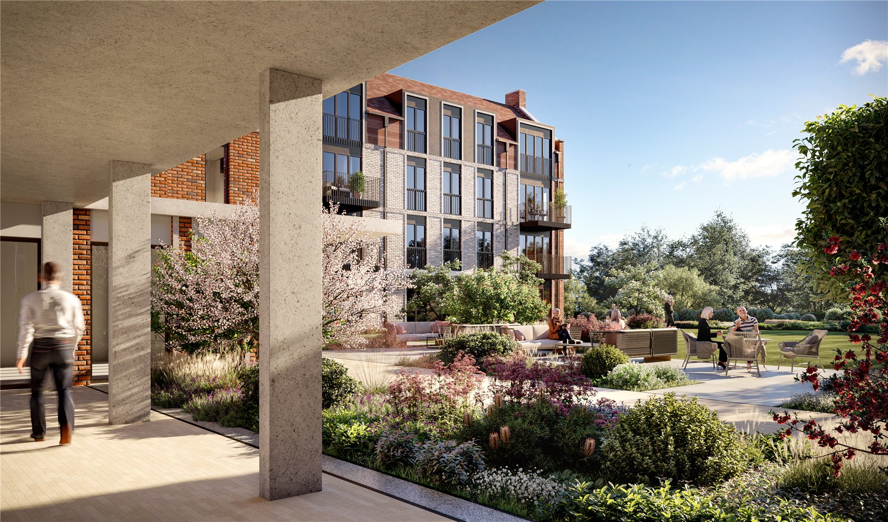Situated in the heart of West Byfleet, just a short stroll from the town centre, the design features two red brick buildings with beautiful stone and bronze coloured detailing, accentuating the windows and peaceful balconies. The buildings will be joined together by a covered colonnade, creating a welcoming sheltered entrance, perfect for meeting friends as the seasons change.