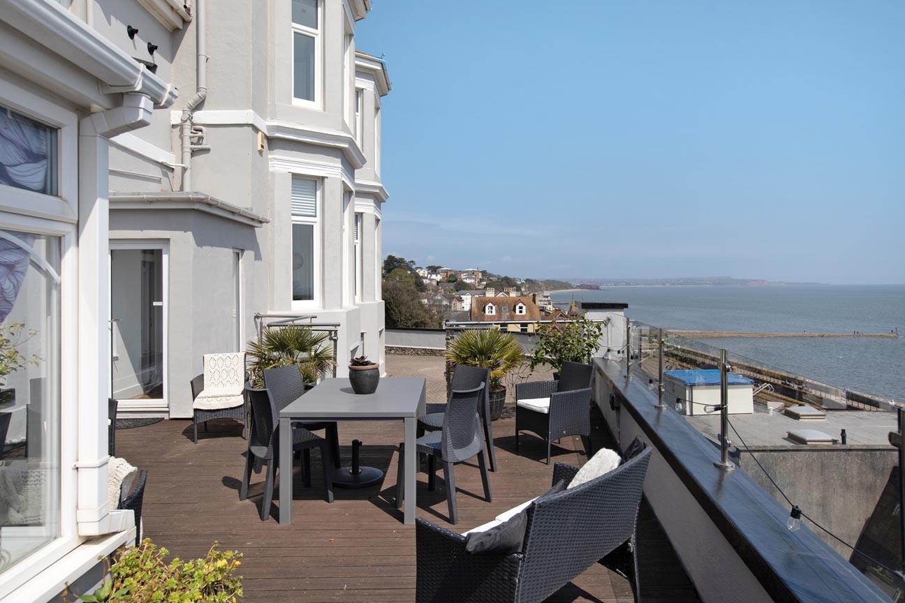 Superb elevated sea and coastal views can be enjoyed from this stylish detached house on the Eastern edge of Teignmouth....