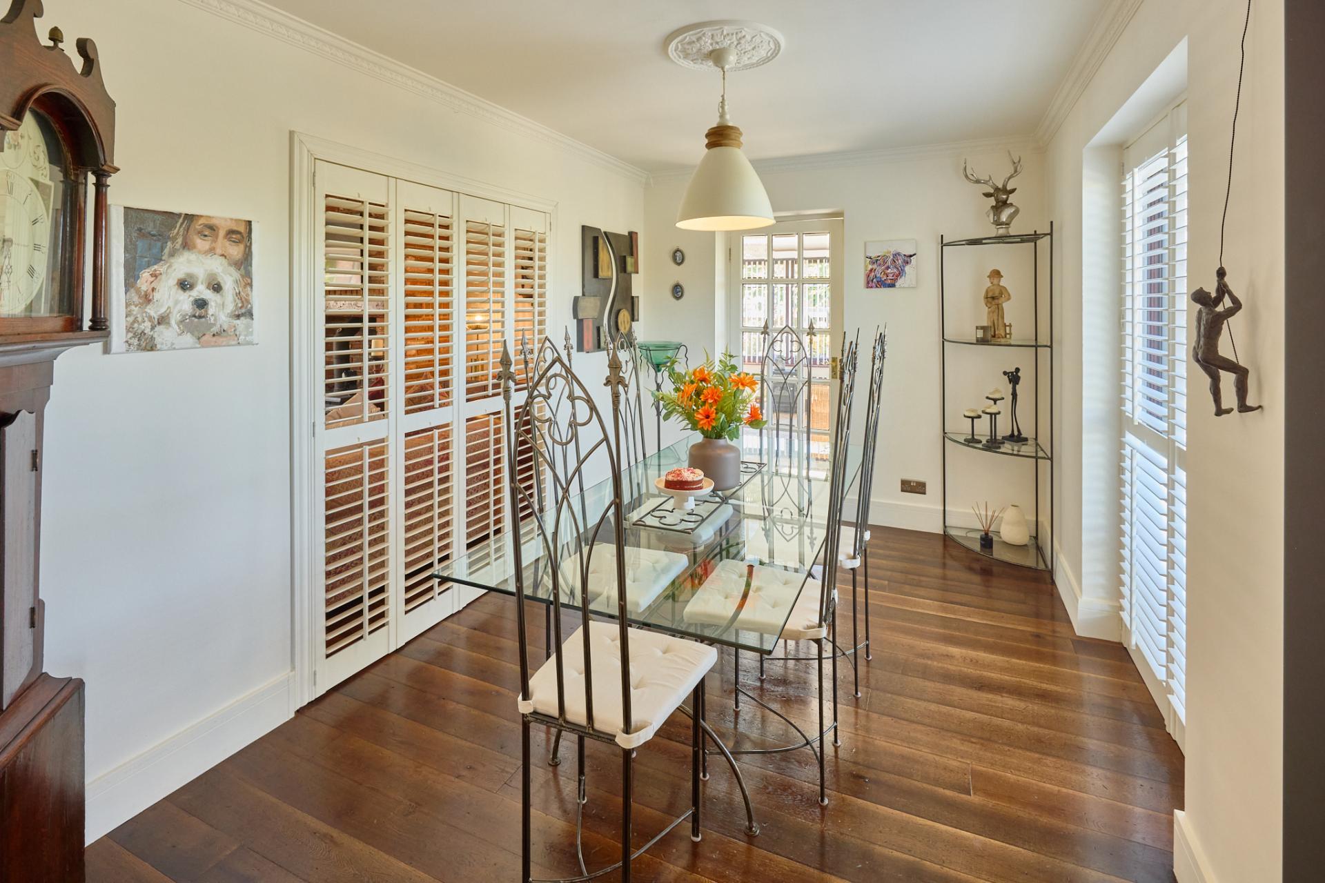 - Formal Dining Room with Elegant Venetian Shutters