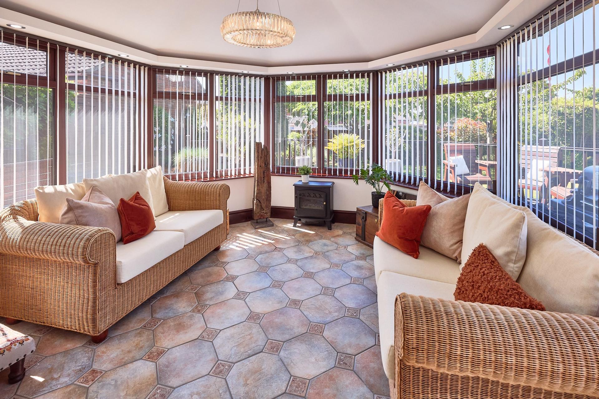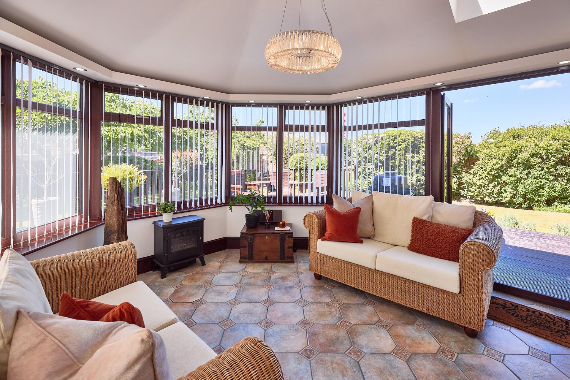 - Sunroom with Garden Views Perfect for Year-Round Use