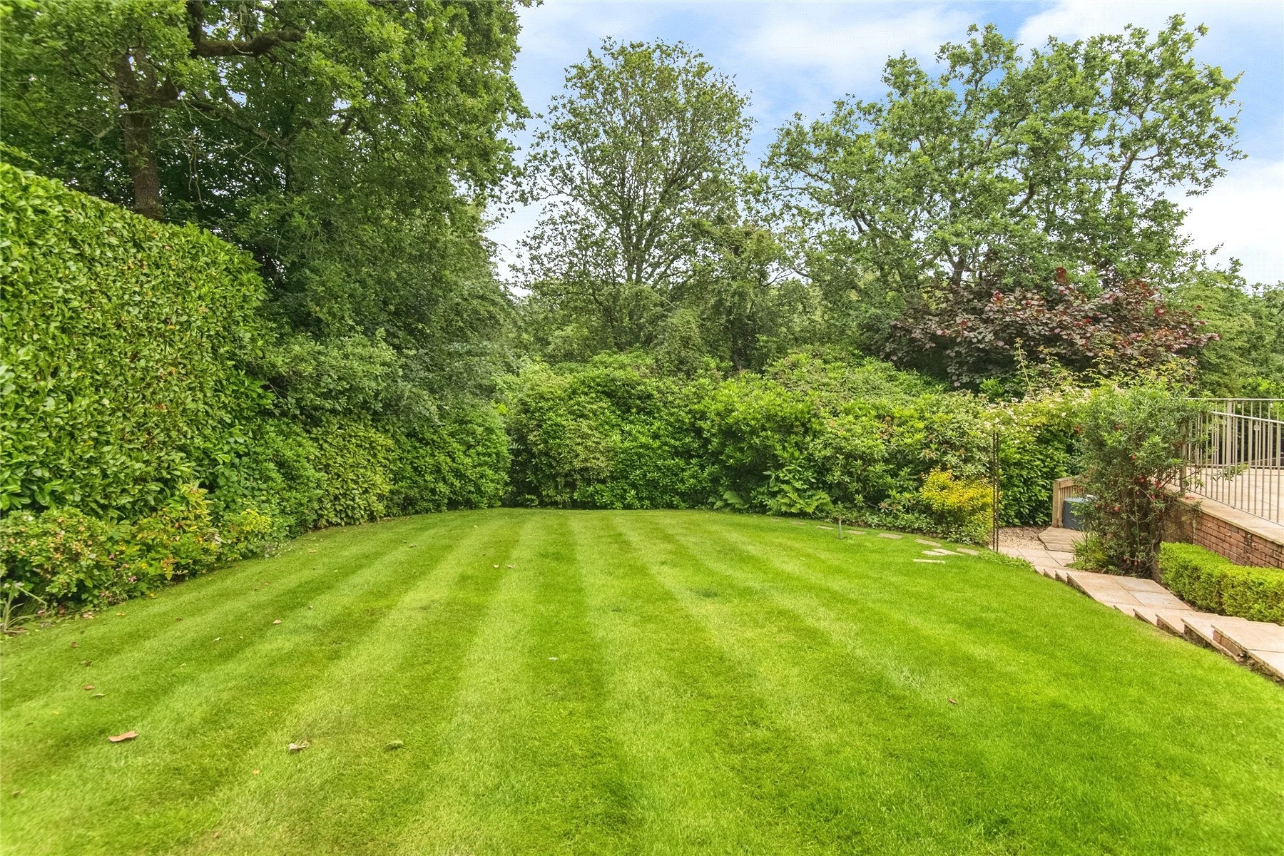 Outside, the delightful gardens are a particularly attractive feature of the property. Carefully landscaped and beautifully maintained, they offer manicured lawns and well planted borders that create year-round colour and interest, while also ensuring a high degree of seclusion and privacy. Mature trees and shrubs enhance the natural woodland setting, and the thoughtful planting frames the house with greenery. Featuring several patio and decked areas providing inviting spaces for outdoor dining, entertaining, and relaxing. The combination of open lawn and sheltered seating areas ensures the outside space is as adaptable and welcoming as the interior.