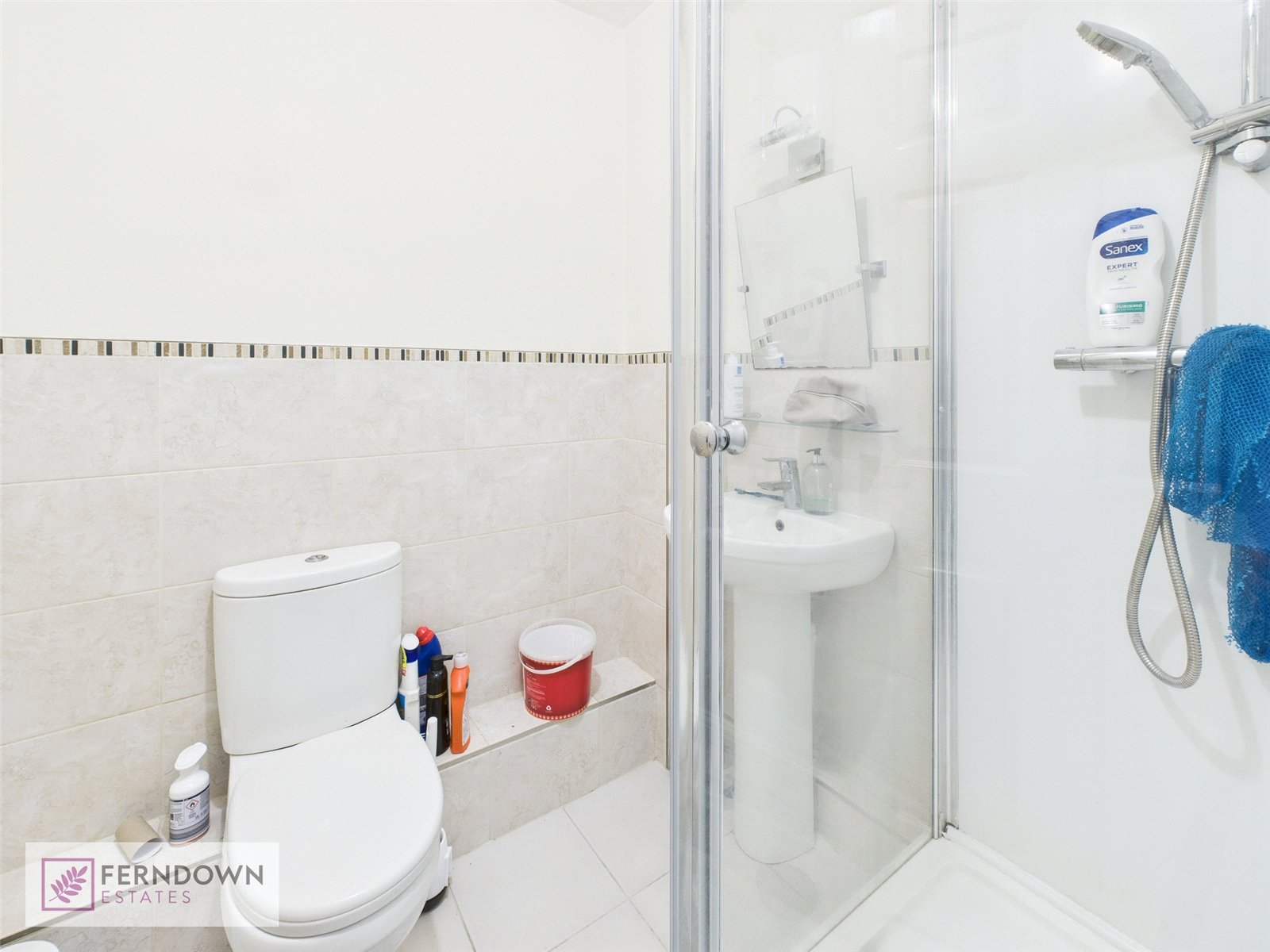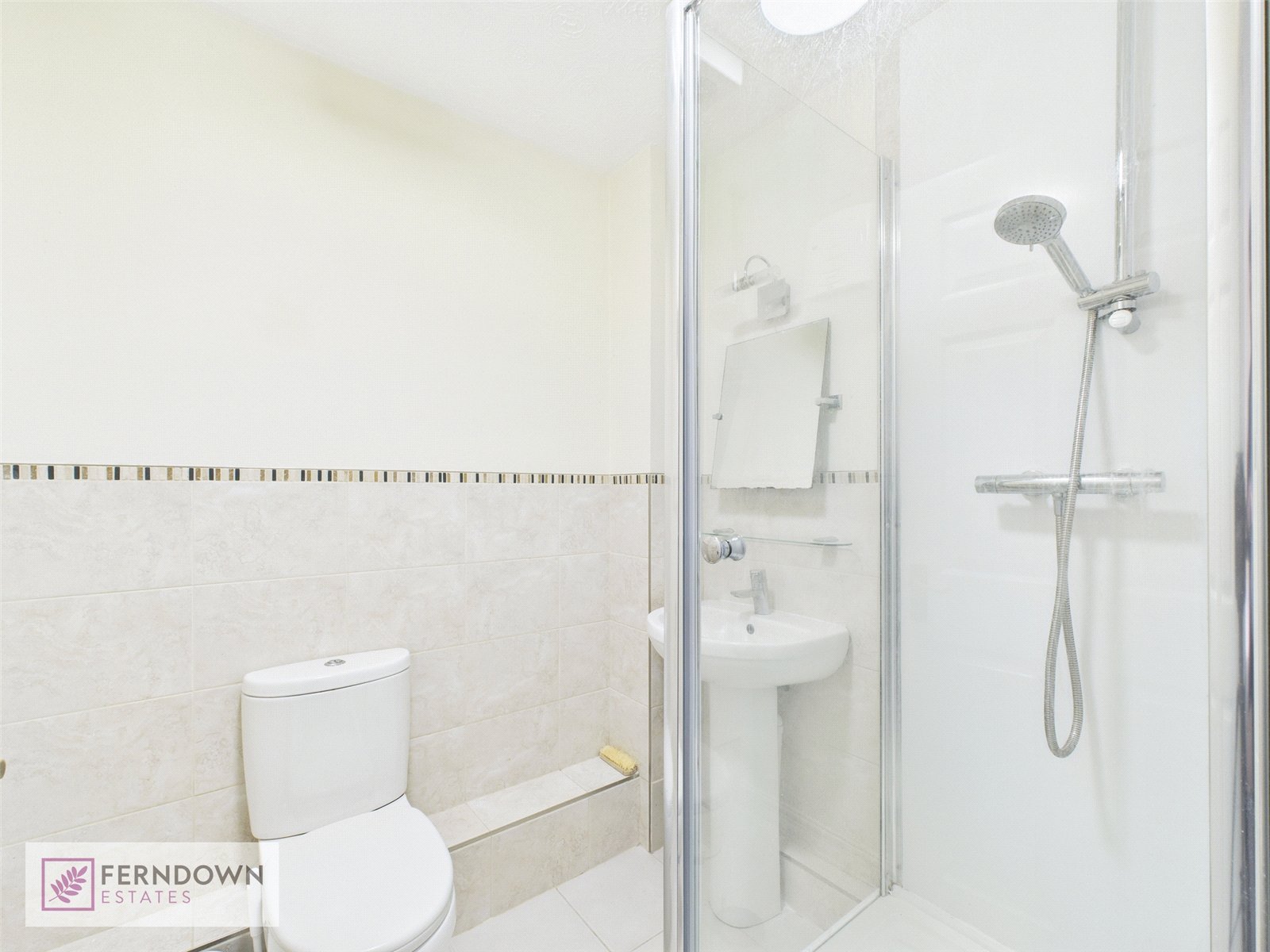 En-Suite Shower Room To include a shower cubicle, low level wc and a pedestal wash hand basin