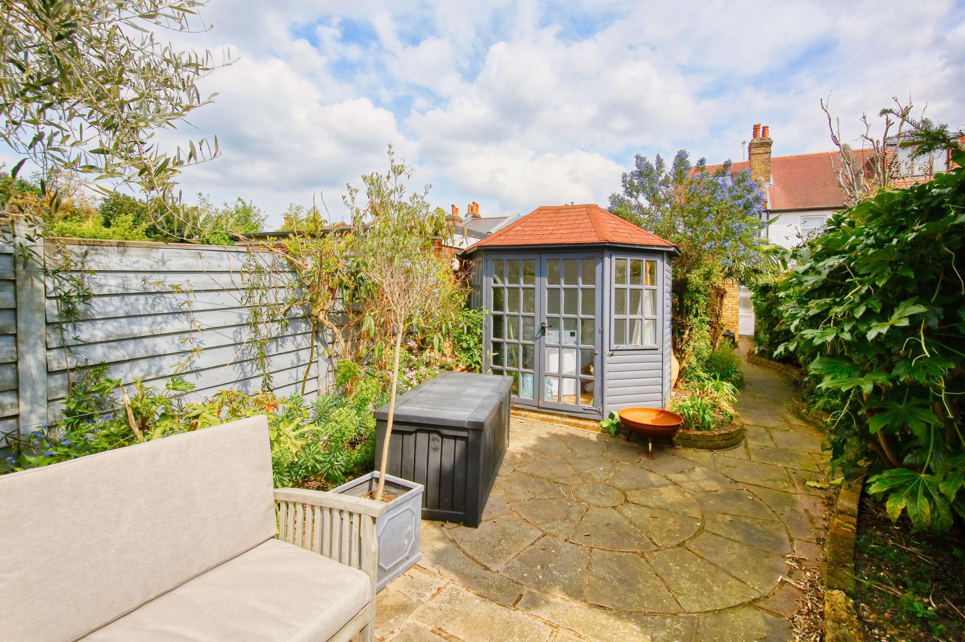 A charming three bedroom end of terrace character property tucked away in a quiet cul-de-sac location on the East/West Molesey border with a beautiful west facing garden, shared driveway and private garage.