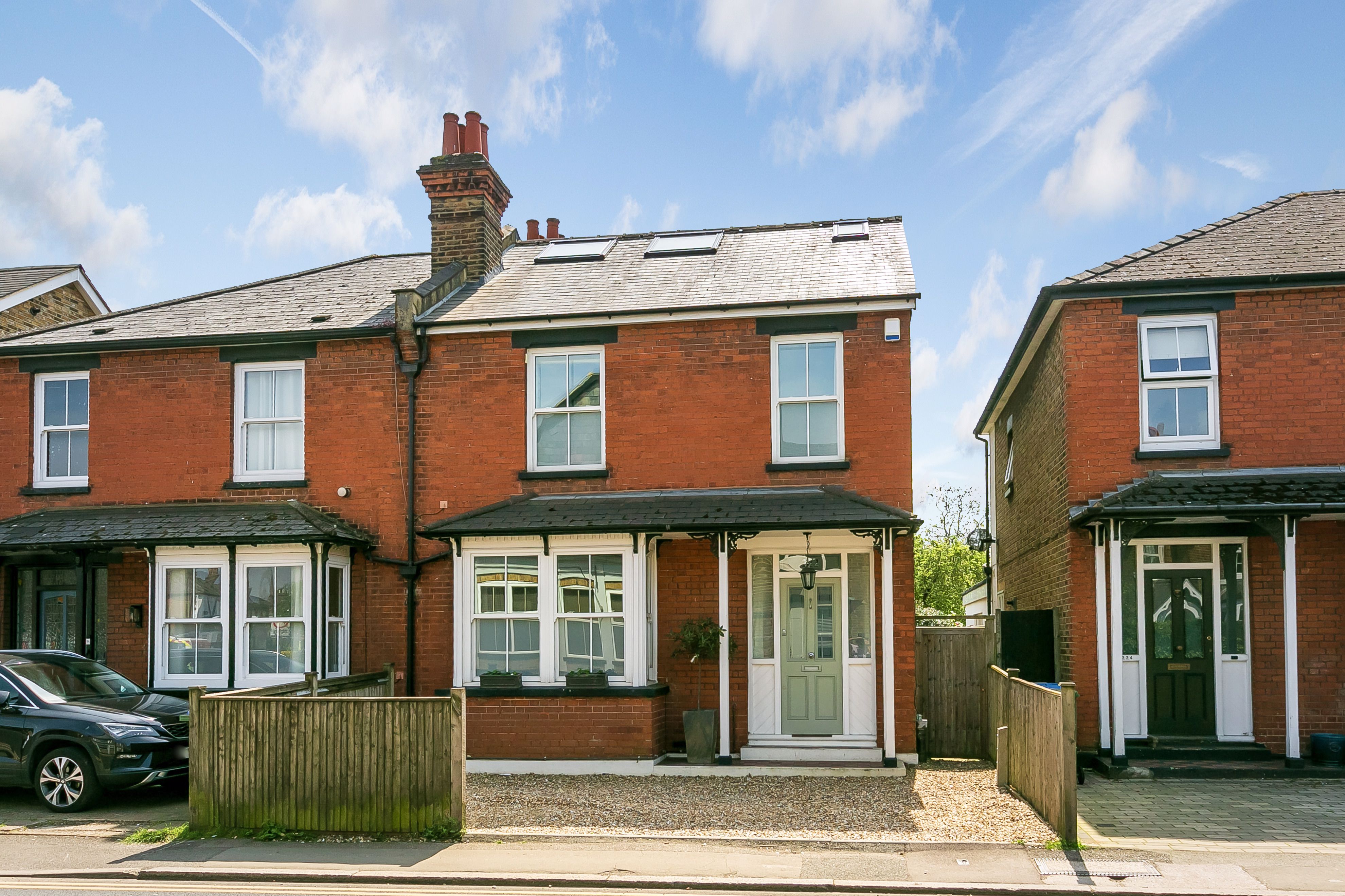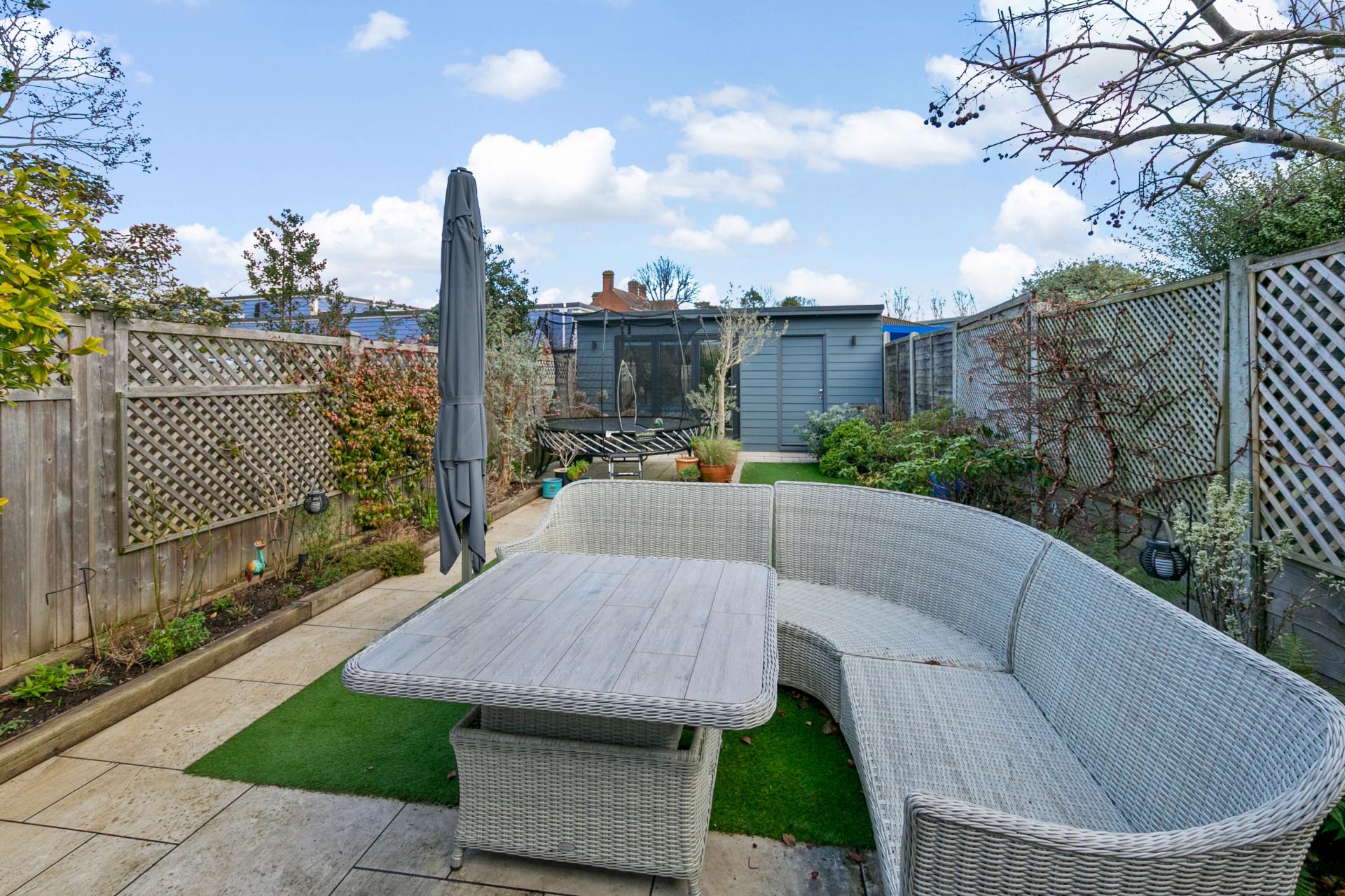 An extended and tastefully renovated four bedroom, three bathroom, family home set within a highly coveted Molesey side road, complemented by a landscaped rear garden, driveway parking, and a fully insulated garden studio / home office.