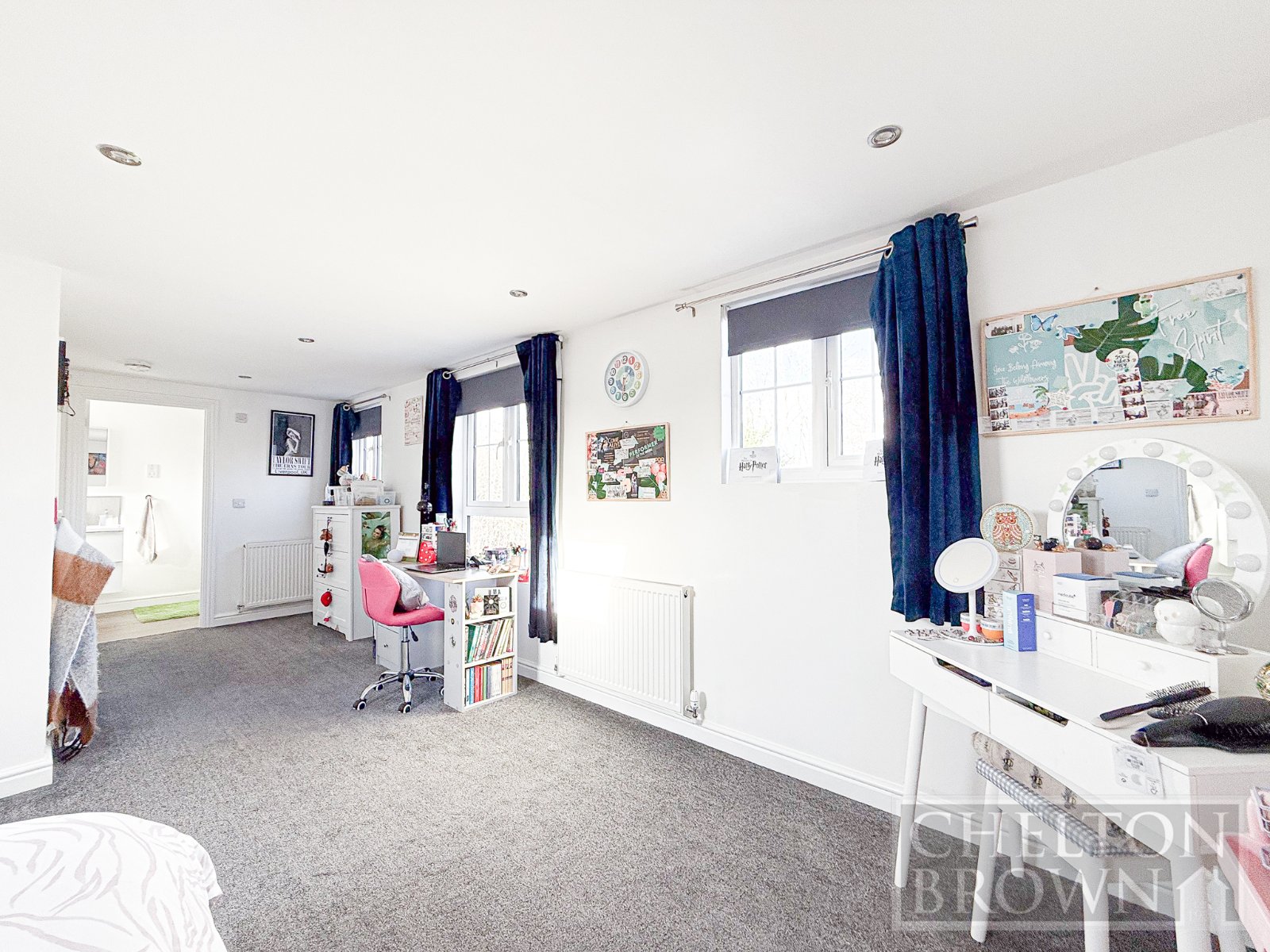 The room is large, light and very versatile with ample storage. There is a large en-suite shower room, with more storage.