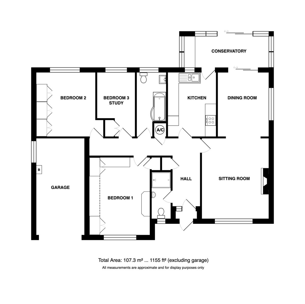 - Three bedrooms