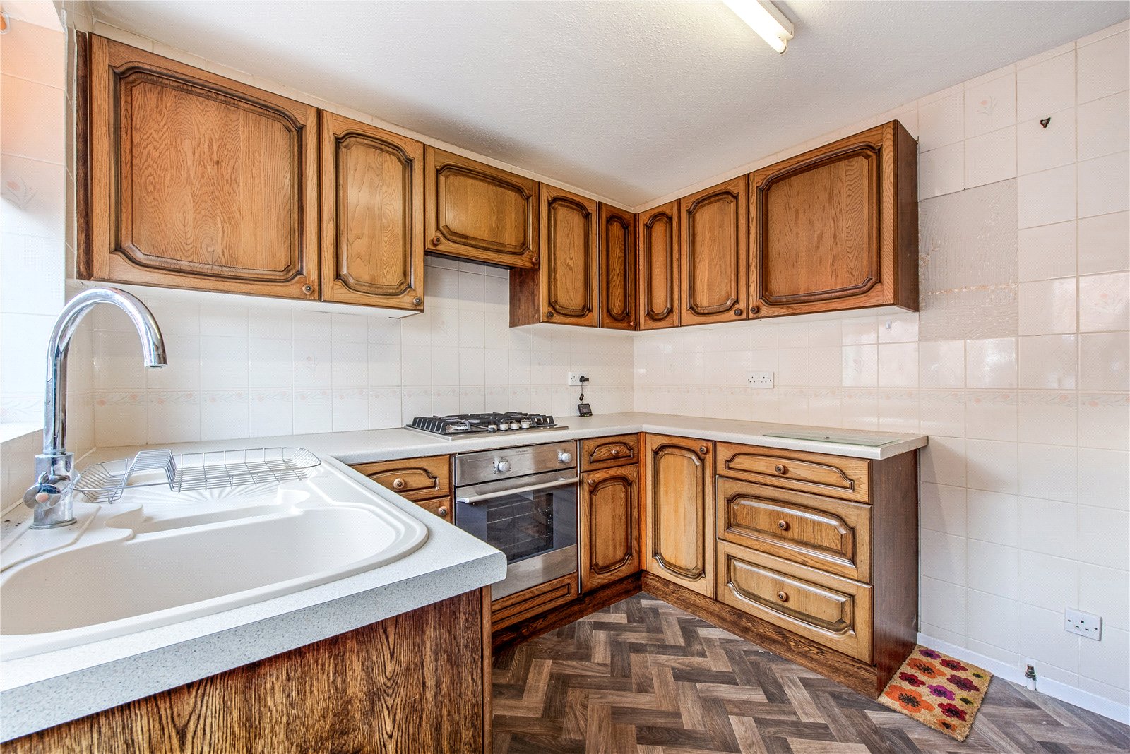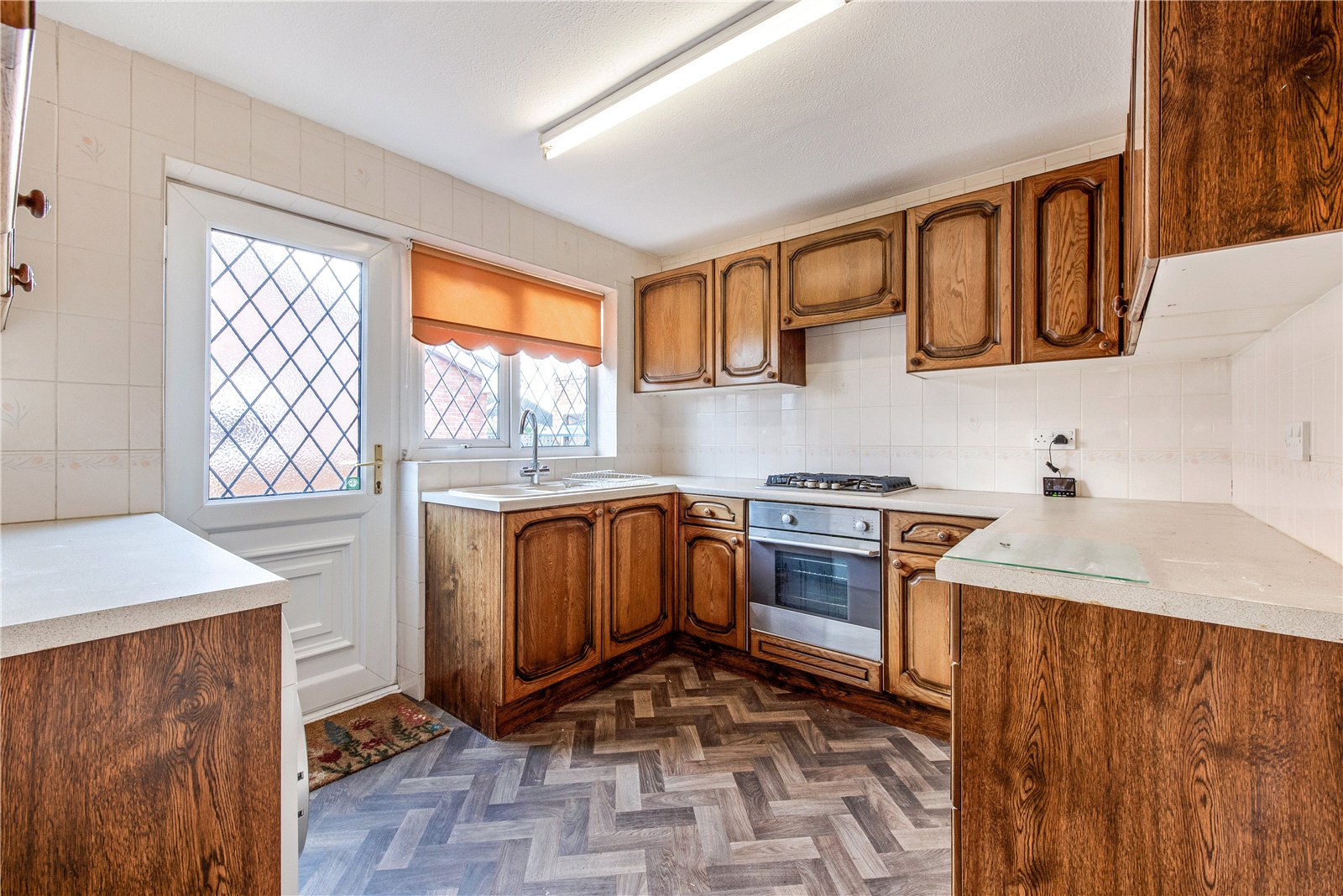 The kitchen is positioned to the side of the property and benefits from a door providing external access. To the front are two double bedrooms, with the main bedroom featuring a built-in wardrobe, served by a bathroom off the reception hall.