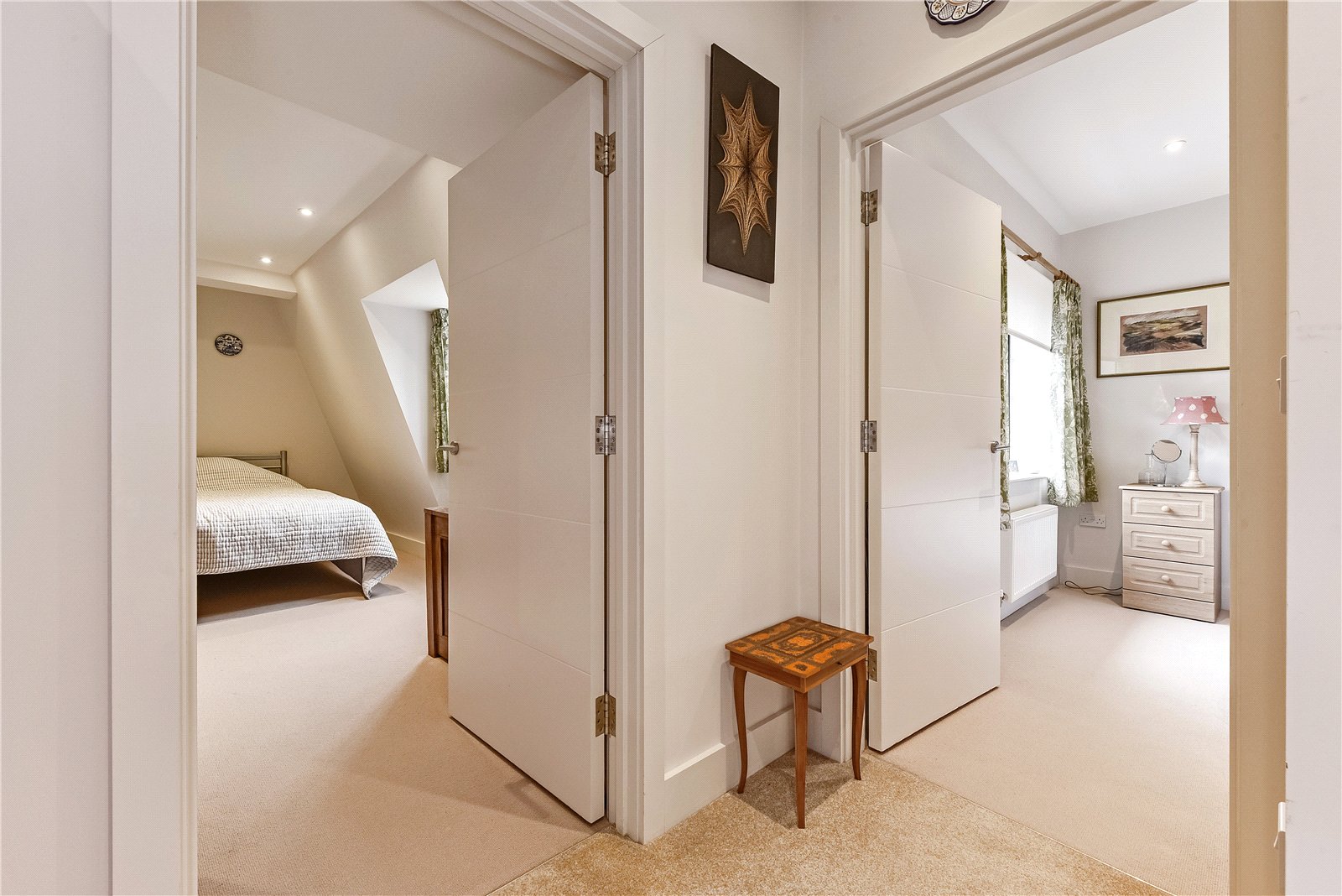 An inner hallway accesses the bedroom accommodation, with the principal benefitting from built in wardrobes, a Cathedral view and an ensuite shower room. Bedroom two also has built in wardrobe, a lovely view towards Priory Park and is served by a contemporary bathroom.