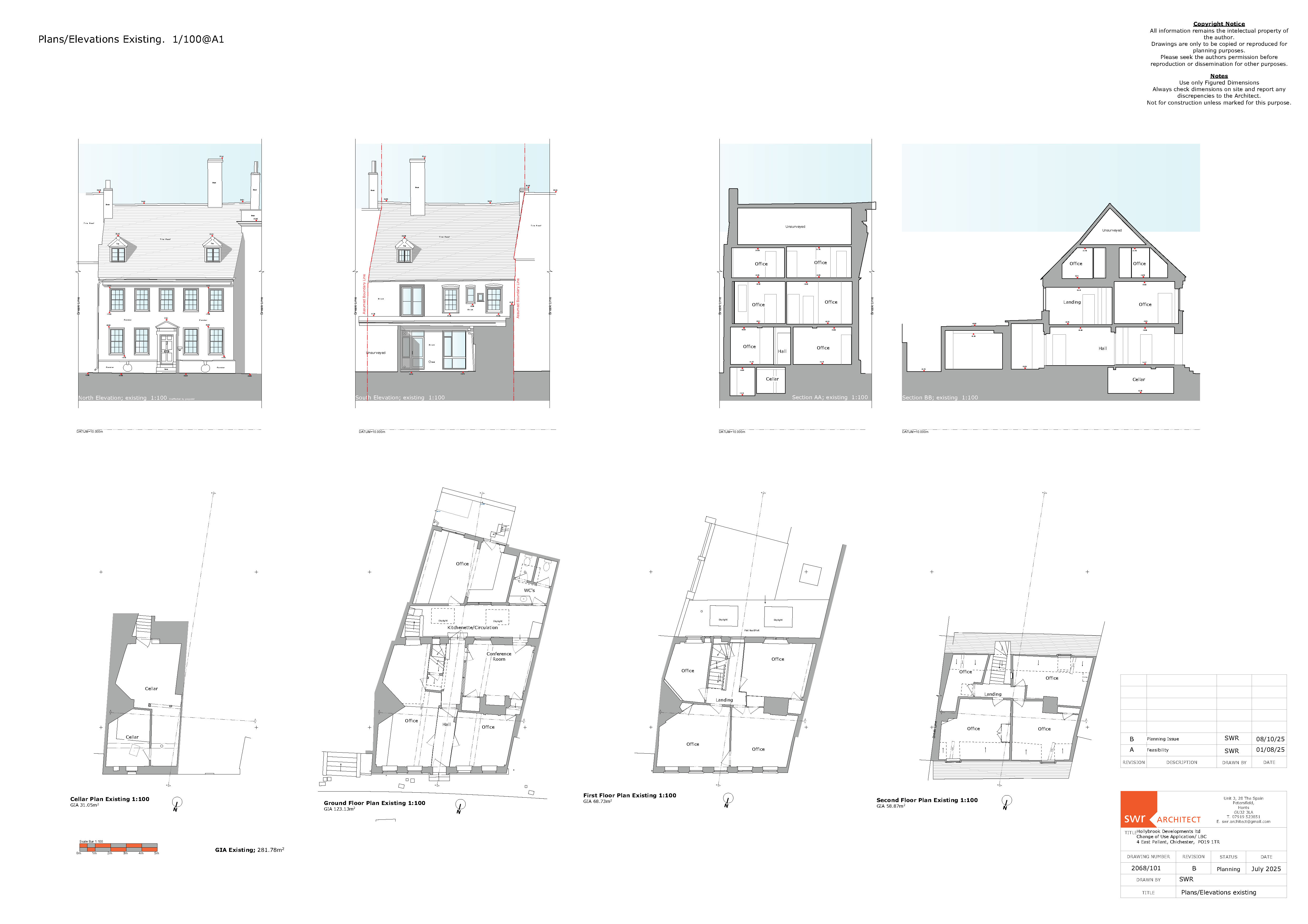 The application was to change the use from offices to a single residential dwelling. The proposed and existing layouts are shown on the architects drawings and includes the demolition of the single storey rear extension. The proposed replacement is a smaller single storey linked kitchen extension. This would create a substantial kitchen overlooking a modest courtyard, appropriate for modern living.