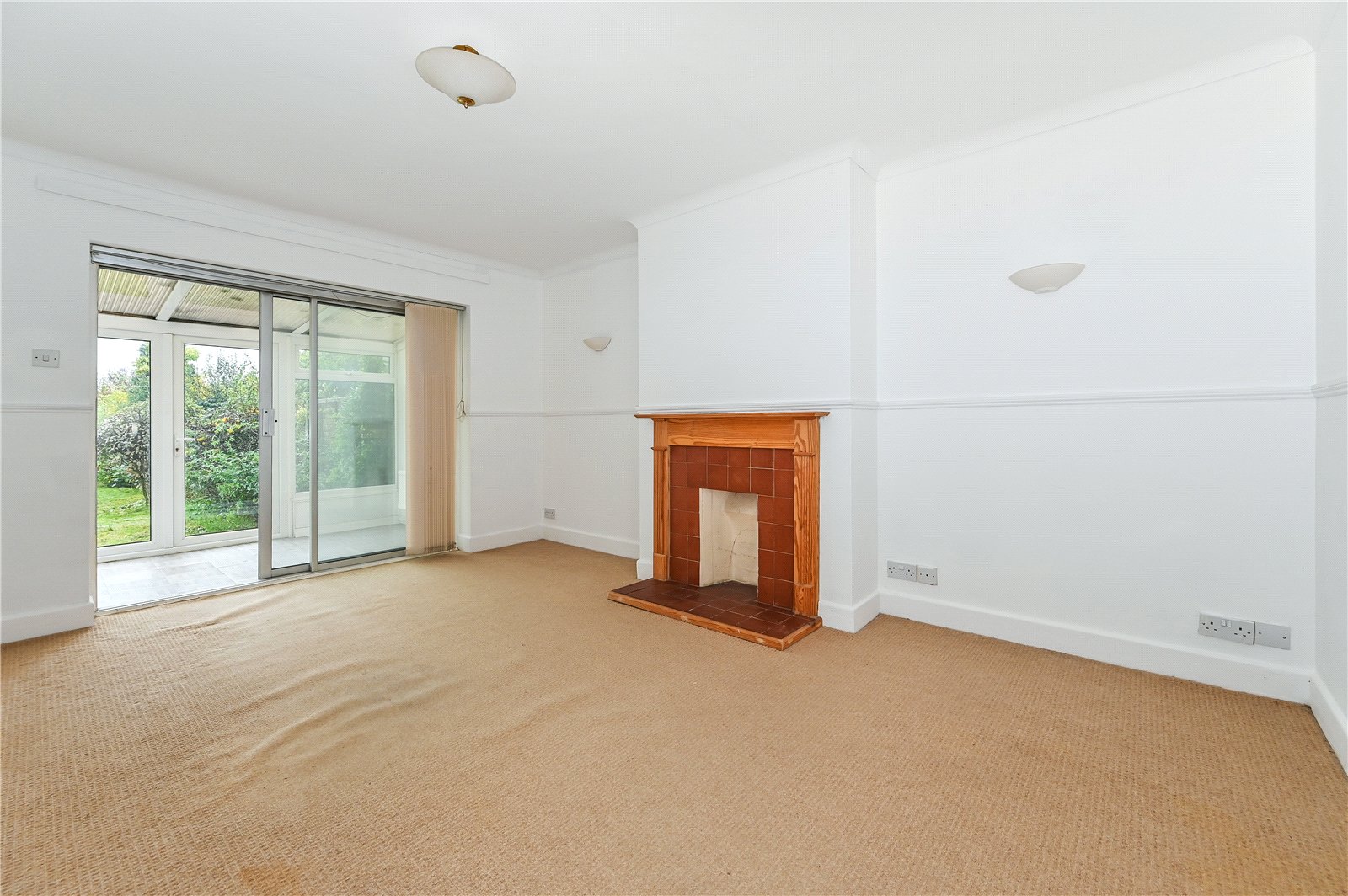 Inside, a well-proportioned sitting room forms the central living space and opens to a small conservatory, which buyers may consider replacing or removing. Two bedrooms sit at the front: a generous double and a comfortable single, both with good natural light. A bathroom completes the layout.