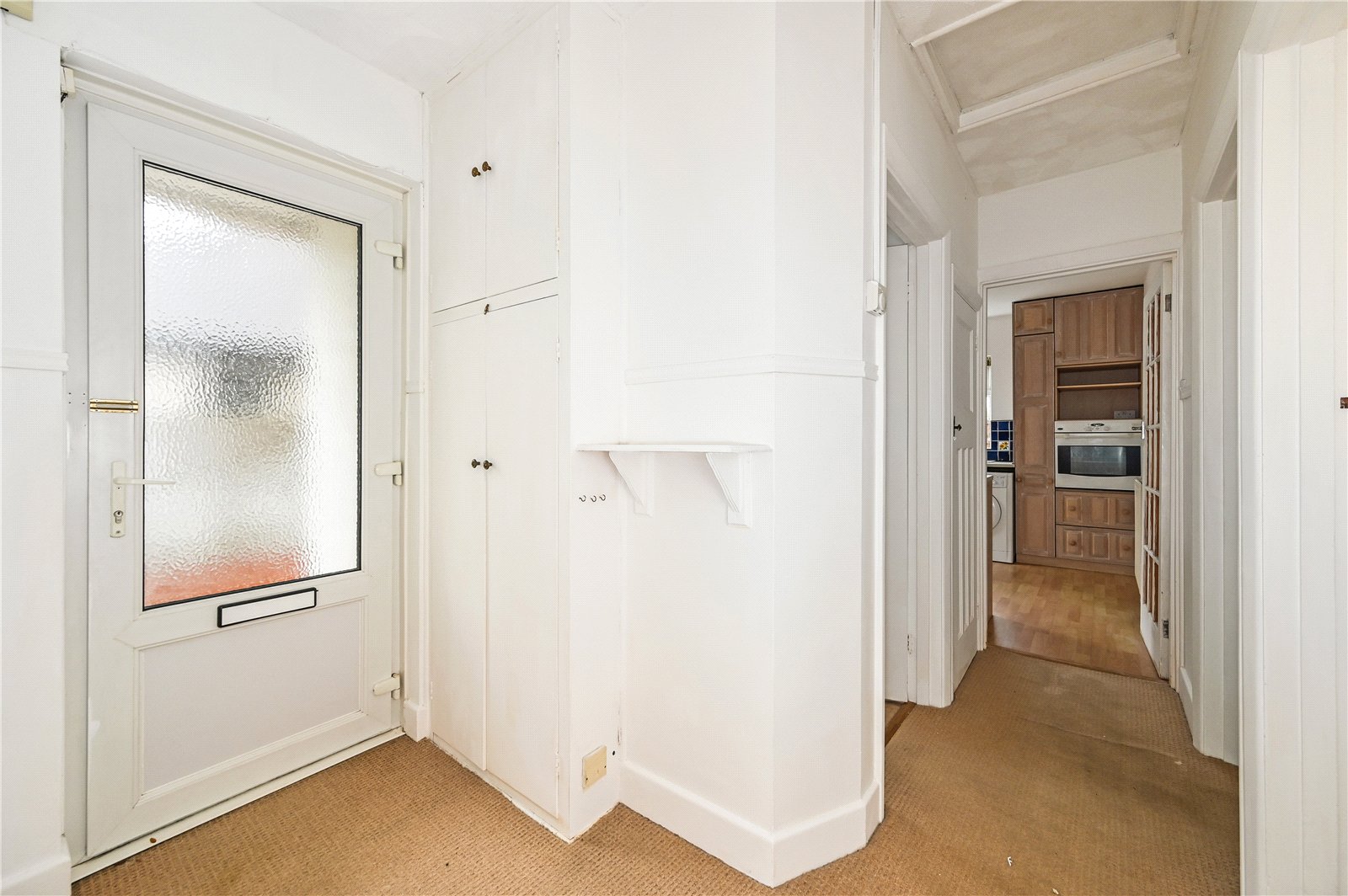 Believed to date from the 1950s, the property has a driveway leading to a garage, ideal for storage or use as a workshop, or home office perhaps, though unlikely to accommodate a modern vehicle. The accommodation would benefit from a light programme of updating, including a new kitchen, bathroom, flooring and general redecoration, making it an appealing project for those seeking a manageable renovation.
