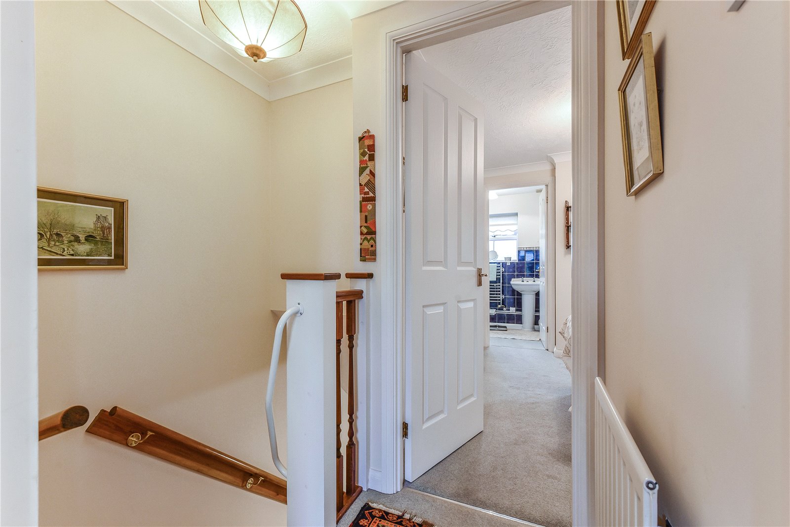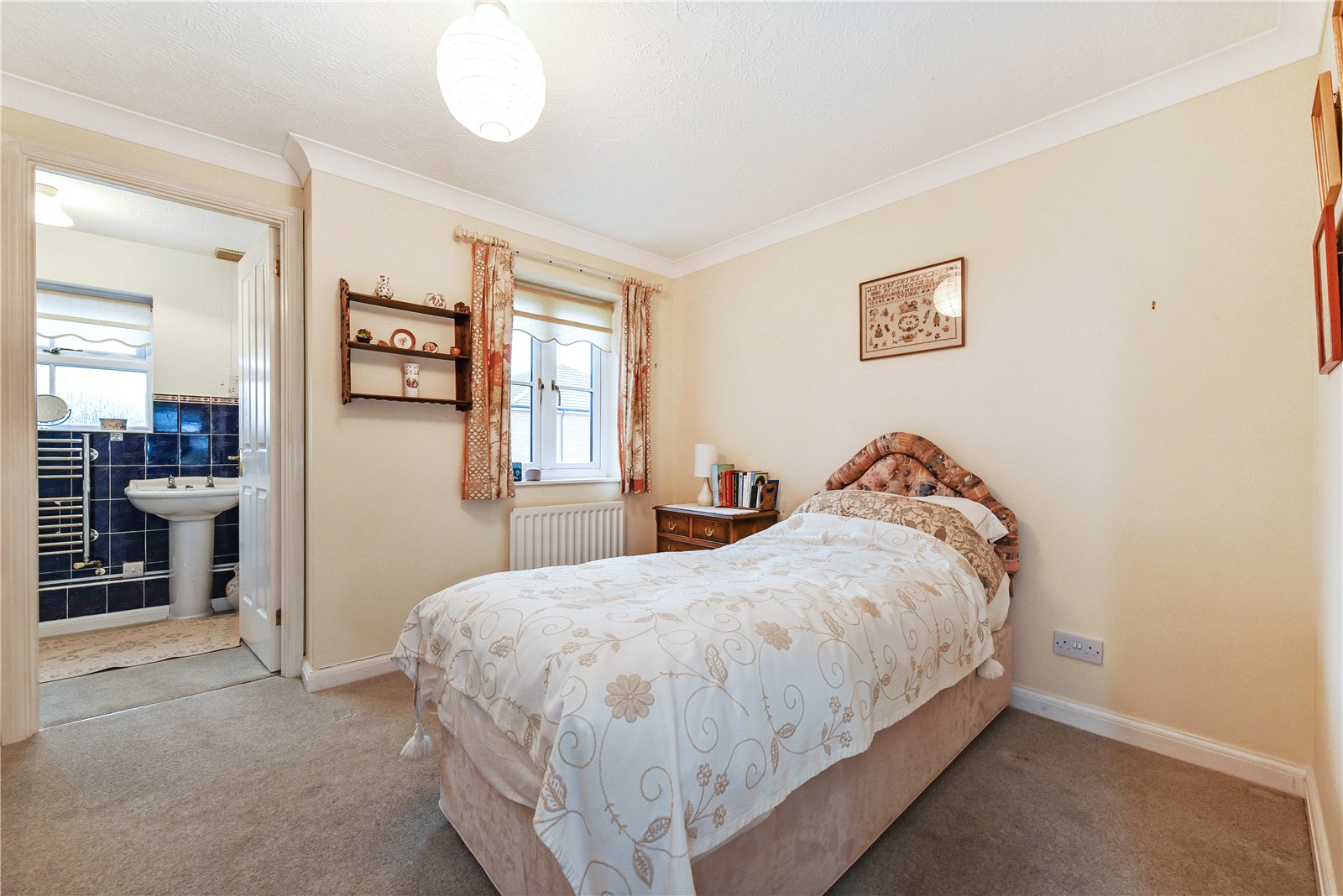 Upstairs, the landing gives way to the principal bedroom which is equipped with built in wardobes and an en suite shower room. The second bedroom is of good size and enjoys a garden view and is serviced by a family bathroom located off the landing.