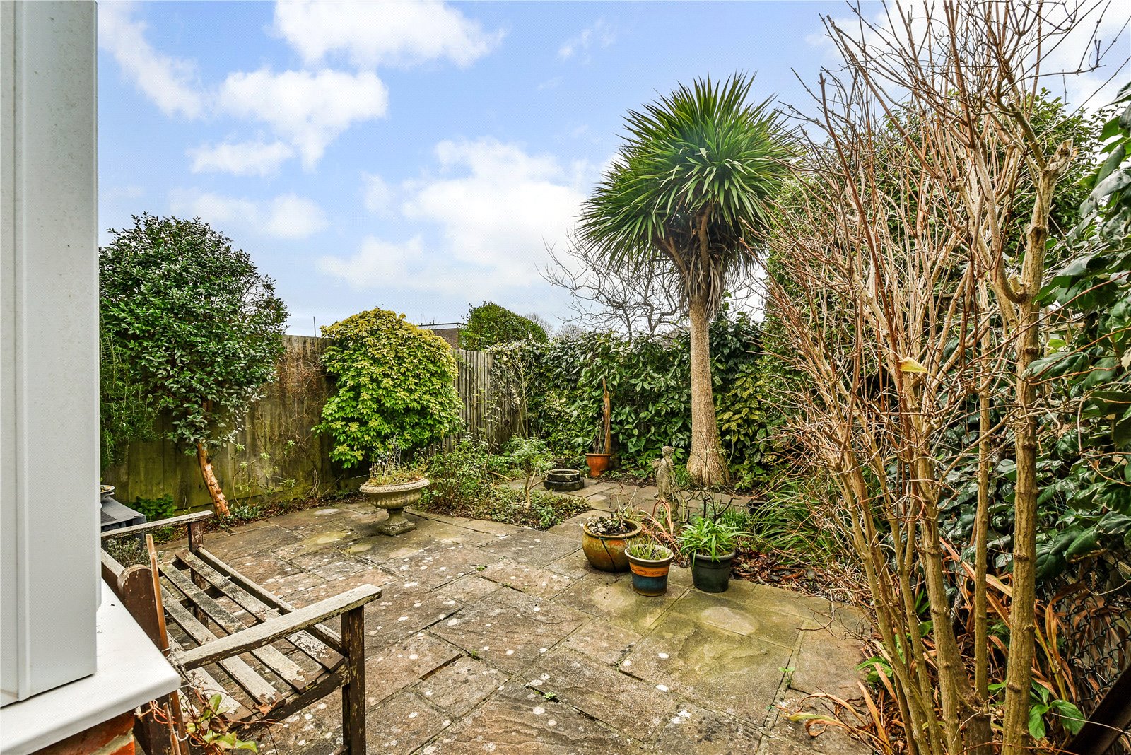 Outside, the rear garden is largely paved, fully enclosed and has a variety of mature shrubs, whilst enjoying a southerly aspect. To the front a driveway provides parking and access to the attached garage, with a rear door to the garden.