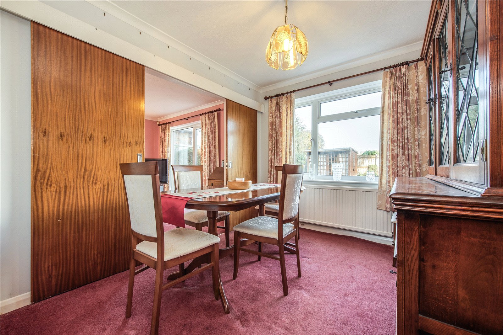 Internally, the house is bright and well proportioned, presenting an excellent opportunity for refurbishment. There is potential to reconfigure the ground floor to create a more contemporary layout, including opening the dining room into the sitting room and combining the kitchen and breakfast room. The sitting room is a bright dual-aspect space. A utility room and cloakroom complete the ground floor.