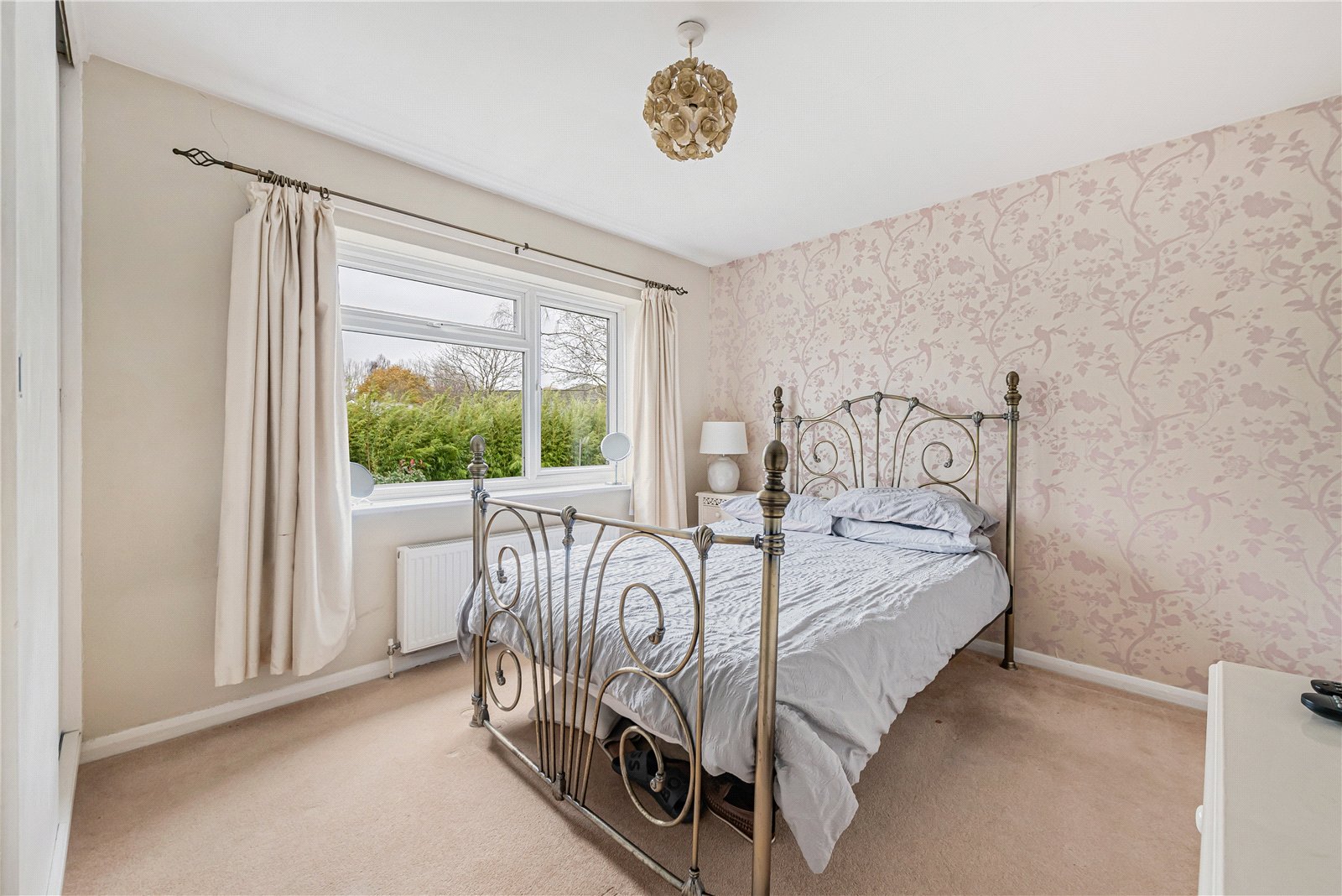 Bedroom 2 : Double bedroom with triple wardrobe and double airing cupboard, radiator and light point. Decorative wall paper to one wall.