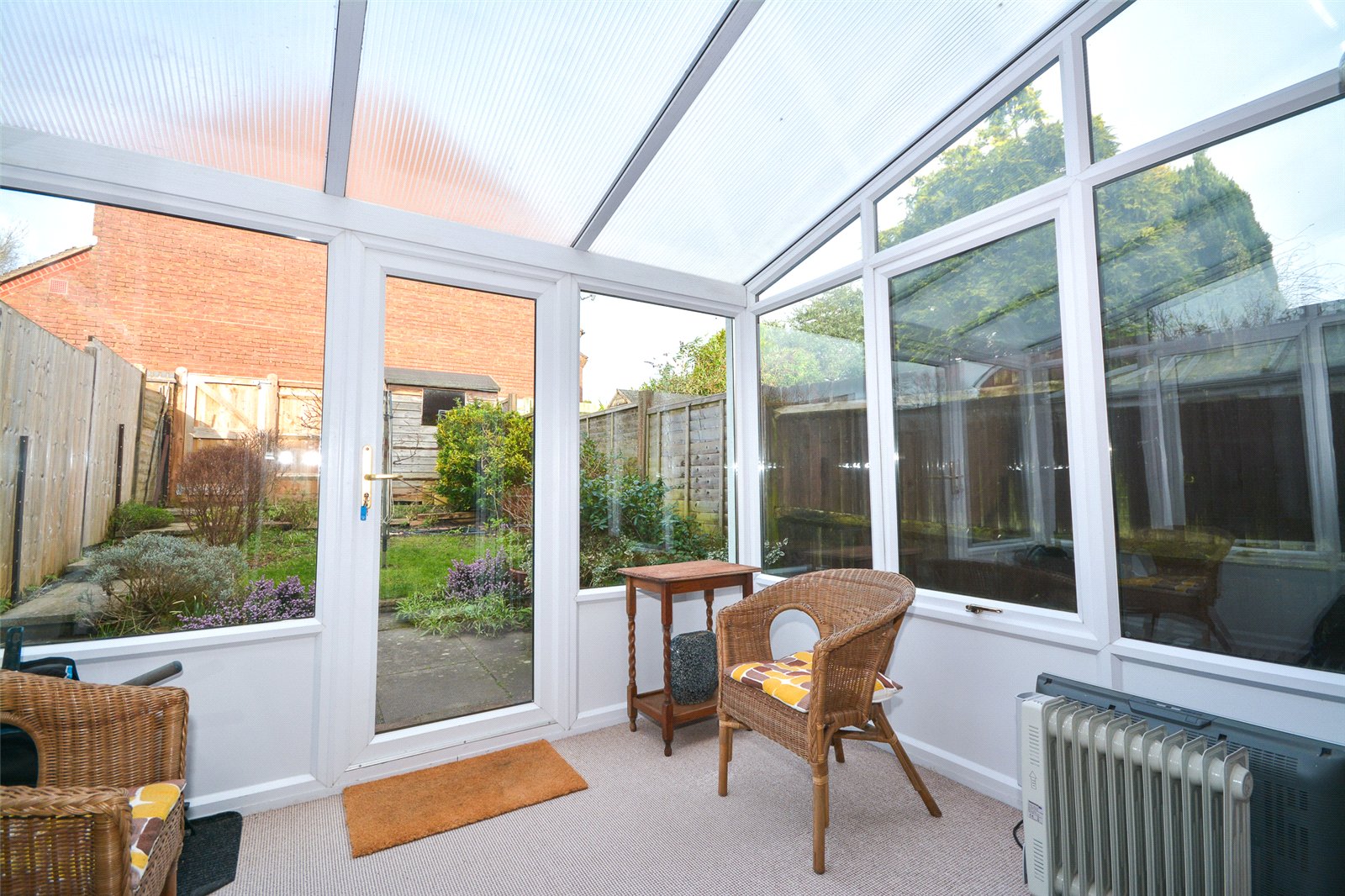 The rear garden is laid to lawn with a small terrace and has a path and a rear gate for access. There is a garden shed to one corner. The whole is fenced on all sides.