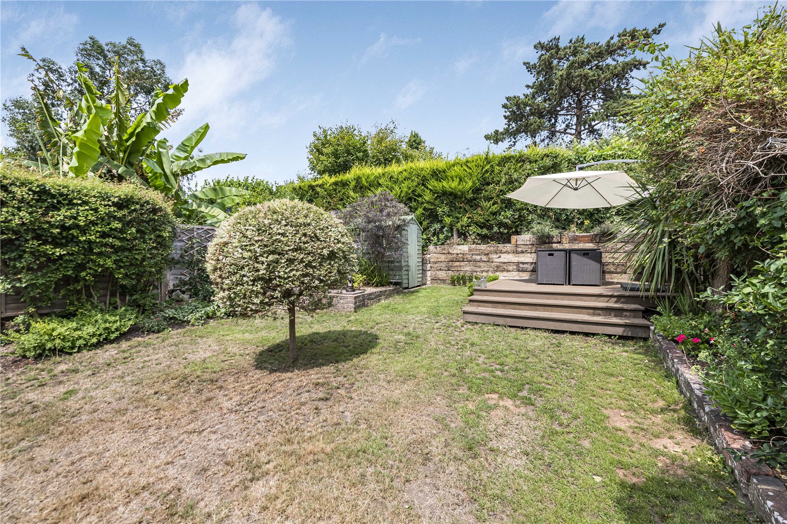 Garden : The garden is a delightful feature having been laid out with a raised sun deck for entertaining in the sun. The main area of garden is raised and laid to lawn with well protected borders for a high degree of privacy. To the corner of the garden is another raised gravelled area with garden shed.