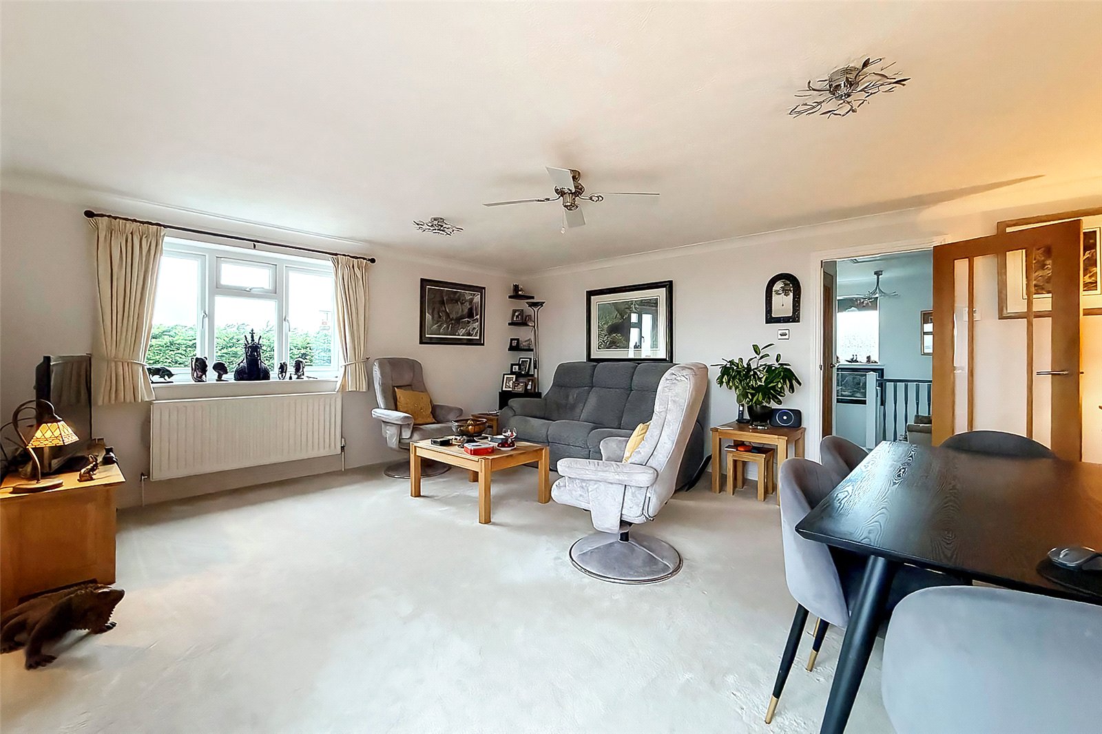 A beautifully presented two-bedroom apartment offering the benefit of a long remaining lease and a private garden. This fantastic home is accessed via its own private entrance, with the accommodation occupying the entire first floor and enjoying bright, spacious living throughout.The dual-aspect living room is particularly generous in size and ideal for entertaining, with ample space for both lounge and dining areas. The fitted kitchen features a breakfast seating area and plentiful cupboard space.Both bedrooms benefit from fitted wardrobes, while the bathroom is finished to a modern standard.A standout feature is the private, fully enclosed rear garden. The property also benefits from a driveway with gated access, providing parking for two cars.