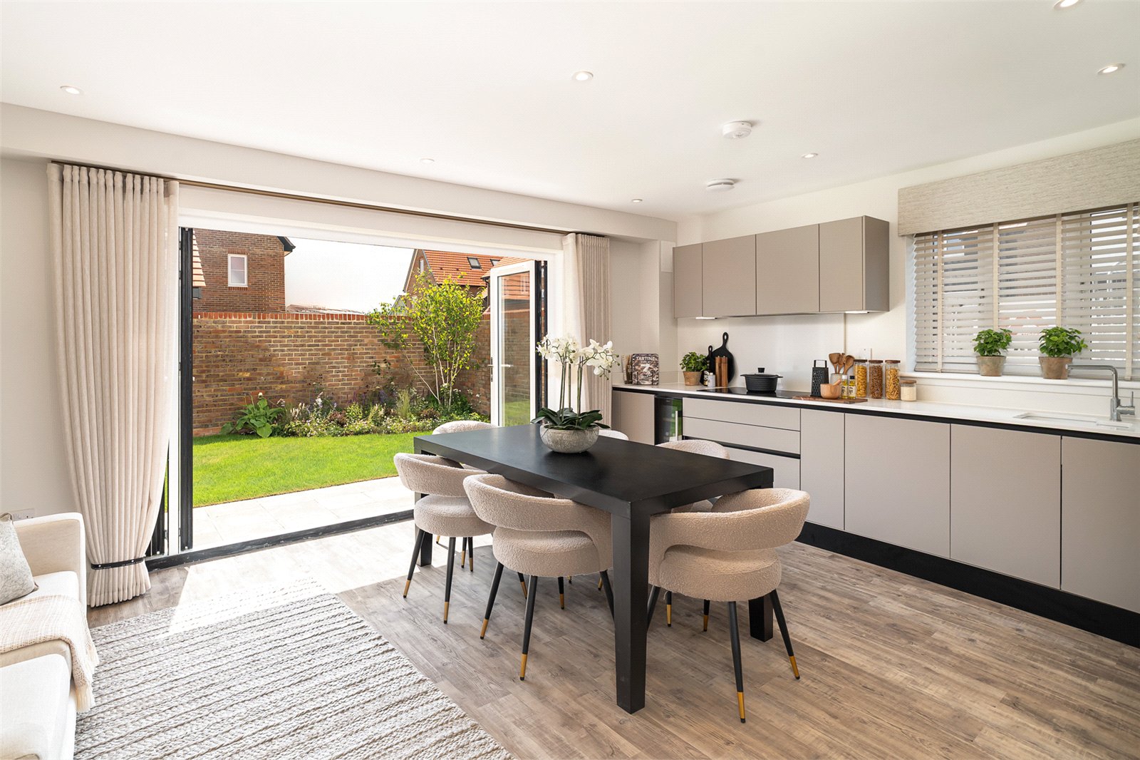 - Contemporary kitchen/family room with bi-fold doors to south-facing garden