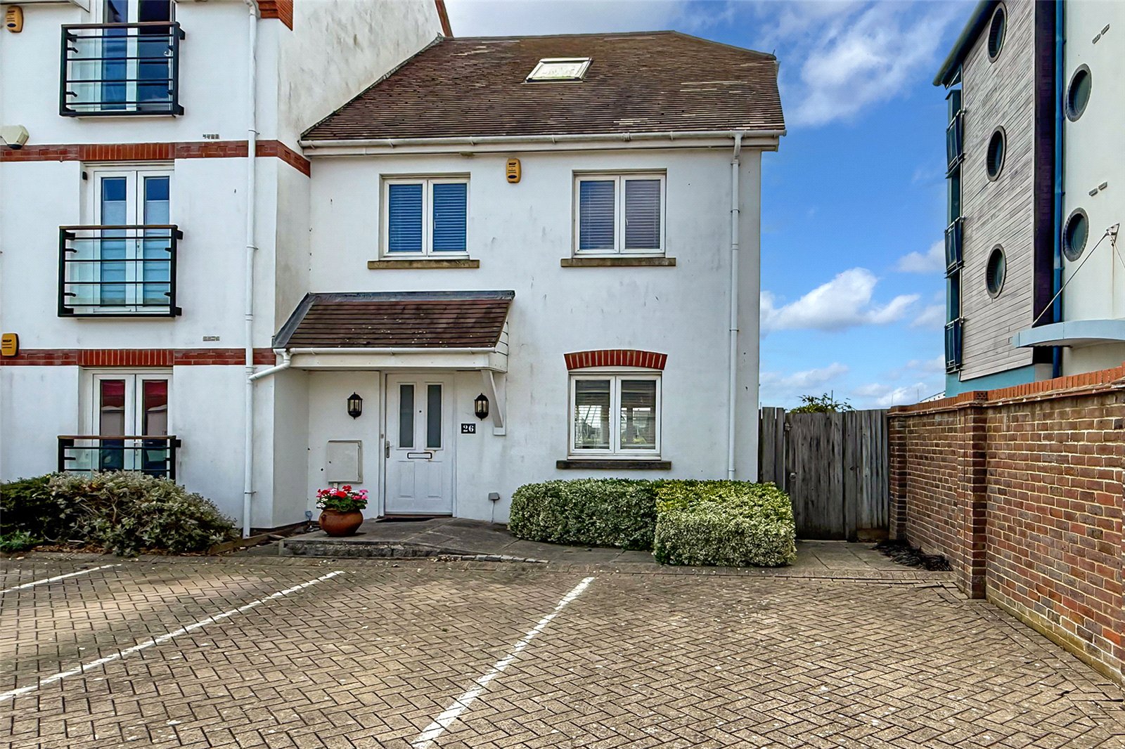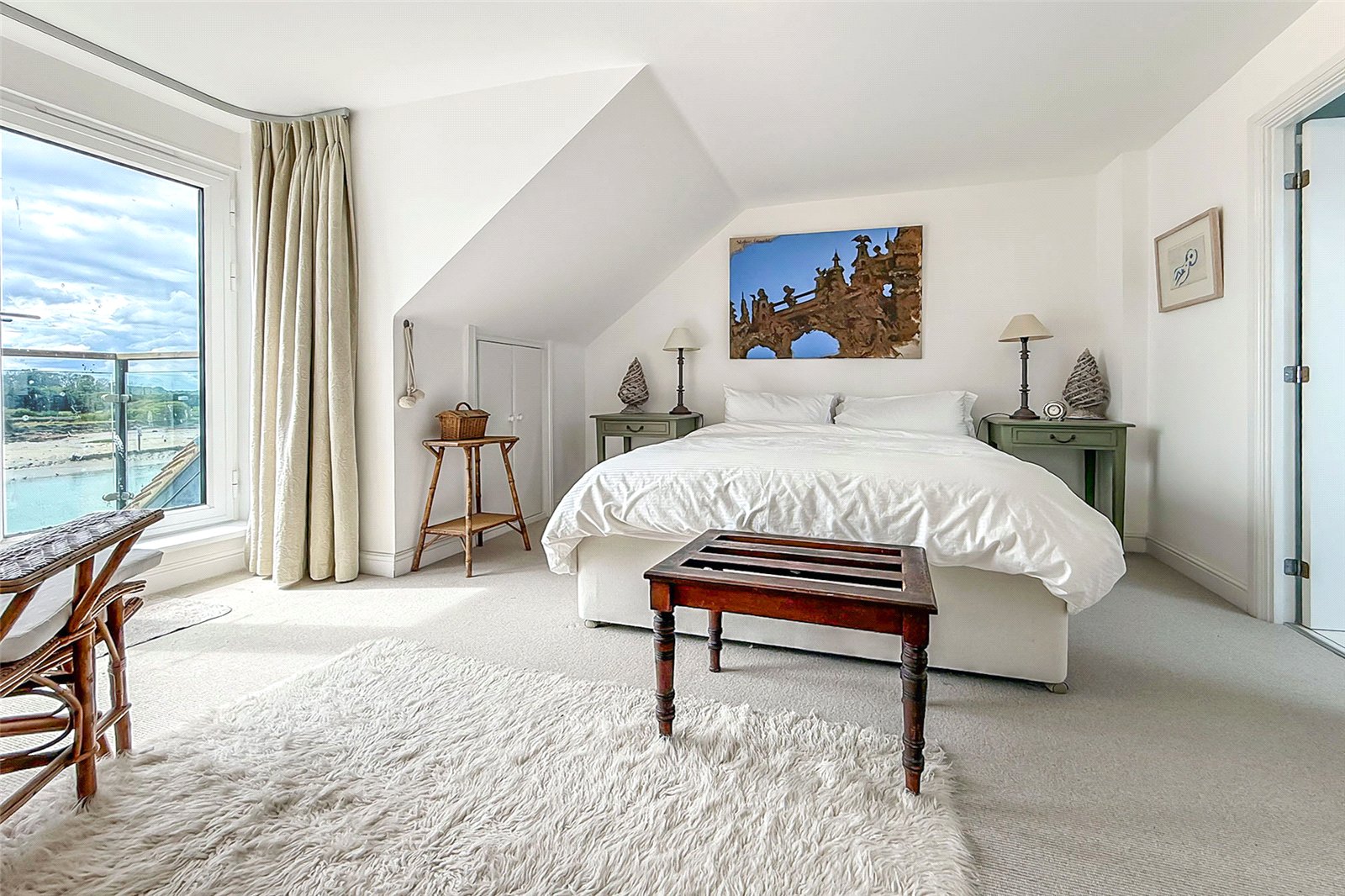Set across three beautifully designed floors, this exceptional three bedroom riverside home offers modern living with breathtaking views across the water. Located in a peaceful and sought after setting, the property combines stylish interiors with thoughtful outdoor spaces, including a private courtyard garden and a balcony perfectly positioned to enjoy the stunning river views. On the ground floor, youll find a welcoming entrance hall, a well appointed kitchen leading to the spacious living/dining area that opens directly out to the private courtyard, ideal for relaxing or entertaining. The first floor features two generously sized bedrooms one with access to the stunning balcony, there is also and a family bathroom on this floor. While the top floor is dedicated to a luxurious principal suite with an ensuite shower room and access to the juliet balcony overlooking the river. Additional benefits include two allocated parking spaces, double glazing throughout, and a layout designed to maximise natural light and take full advantage of the propertys riverside location. This is a rare opportunity to enjoy tranquil waterside living just a short distance from local amenities and transport links.