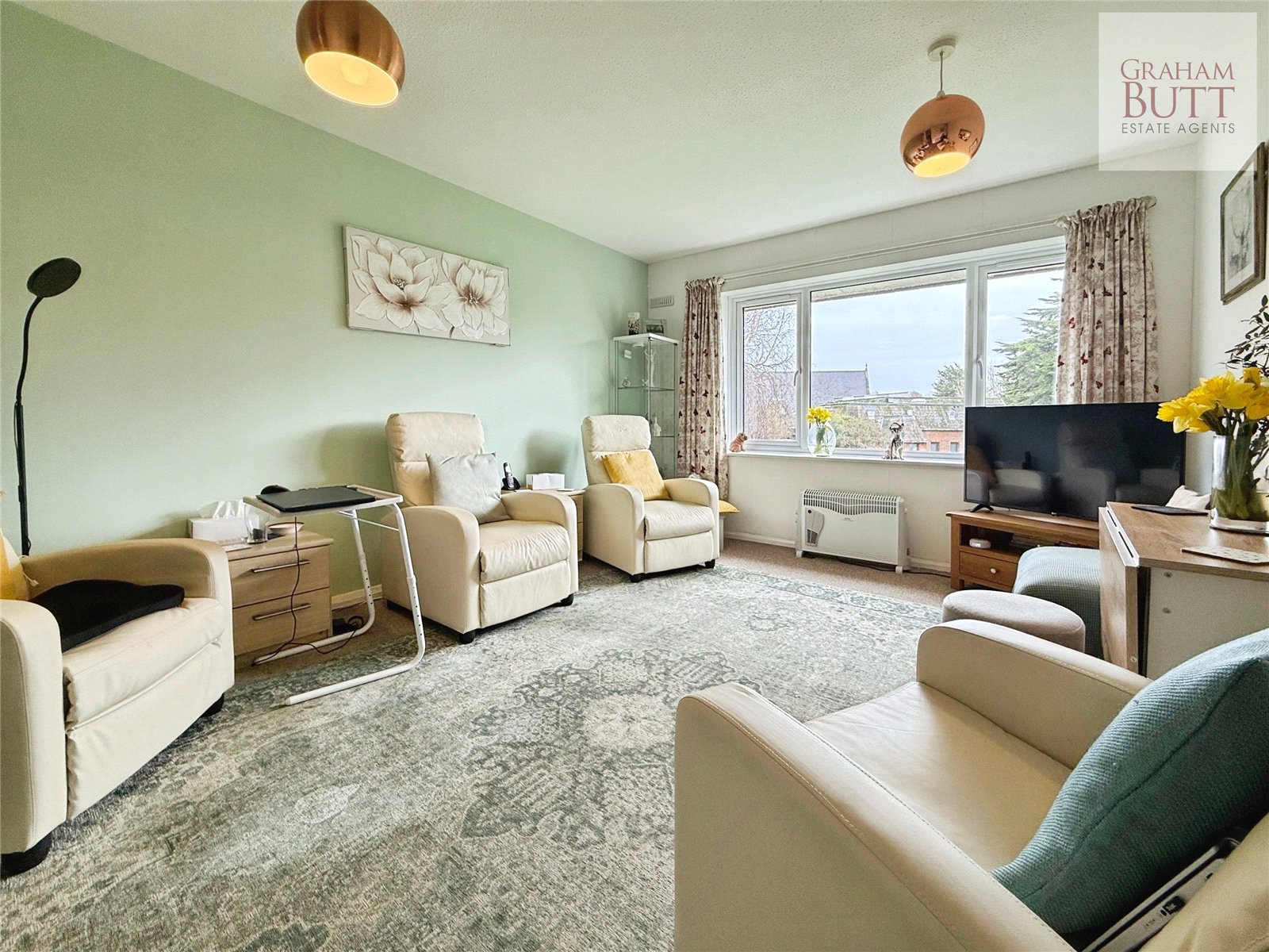 Step into this beautifully presented, light-filled one-bedroom retirement apartment, thoughtfully designed for the over-60s and located on the first floor of a highly regarded and well-maintained development. Overlooking attractively landscaped communal gardens with mature trees, the apartment enjoys a peaceful, green outlook that creates a wonderfully calming atmosphere. Recently redecorated throughout, the property is easily accessible via lift and offers well proportioned accommodation. The spacious lounge/dining room provides an inviting space to relax or entertain, while the contemporary re-fitted kitchen is both stylish and practical. A sleek, modern shower room complements the generous double bedroom, which also benefits from delightful garden views. Additional features include excellent storage with two hallway cupboards, a newly installed hot water boiler, electric heating, and a secure entry phone system for added reassurance. Residents enjoy a range of on-site amenities, including a friendly house manager, a comfortable communal lounge, laundry facilities, beautifully maintained shared gardens, and residents parking. A rare advantage is the perpetual self-renewing lease, offering valuable long-term security and peace of mind. This charming apartment combines comfort, convenience, and community in an idyllic setting, an ideal place to feel truly at home.