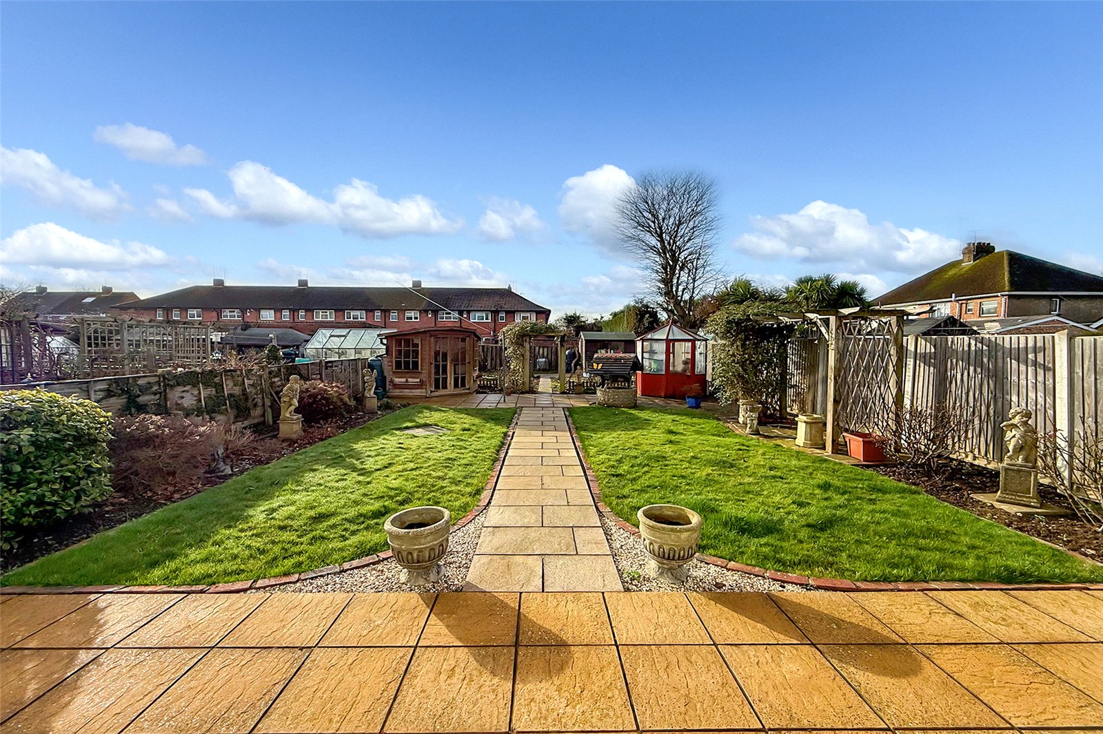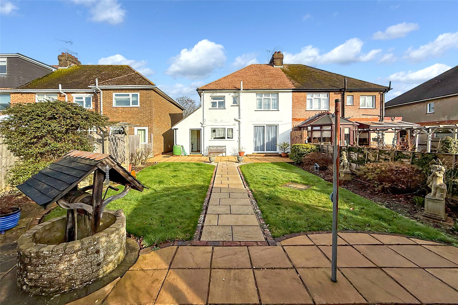 A superb opportunity to purchase this 1930s-built three-bedroom semi-detached home, ideally situated overlooking a large park green and offered to the market with NO ONWARD CHAIN. The ground floor comprises a welcoming porch and spacious entrance hall, leading to two generously sized reception rooms. The living room features a charming fireplace, while the separate dining room enjoys doors opening directly onto the rear garden. The fitted kitchen overlooks the garden and is complemented by a separate utility room with WC and internal access to the garage. Upstairs, all three bedrooms are well proportioned, with bedrooms one and two benefiting from built-in wardrobes. The family bathroom is fitted with both a bath and a separate walk-in shower. Externally, the beautifully presented south-facing rear garden is an excellent size and offers significant potential to extend the property, subject to the usual planning permissions. The garden also features two storage sheds, a large vegetable patch, and side access to the driveway. Further benefits include off-road parking to the front, along with a garage to the side complete with power and lighting.