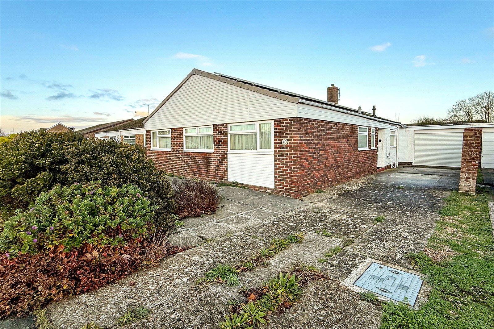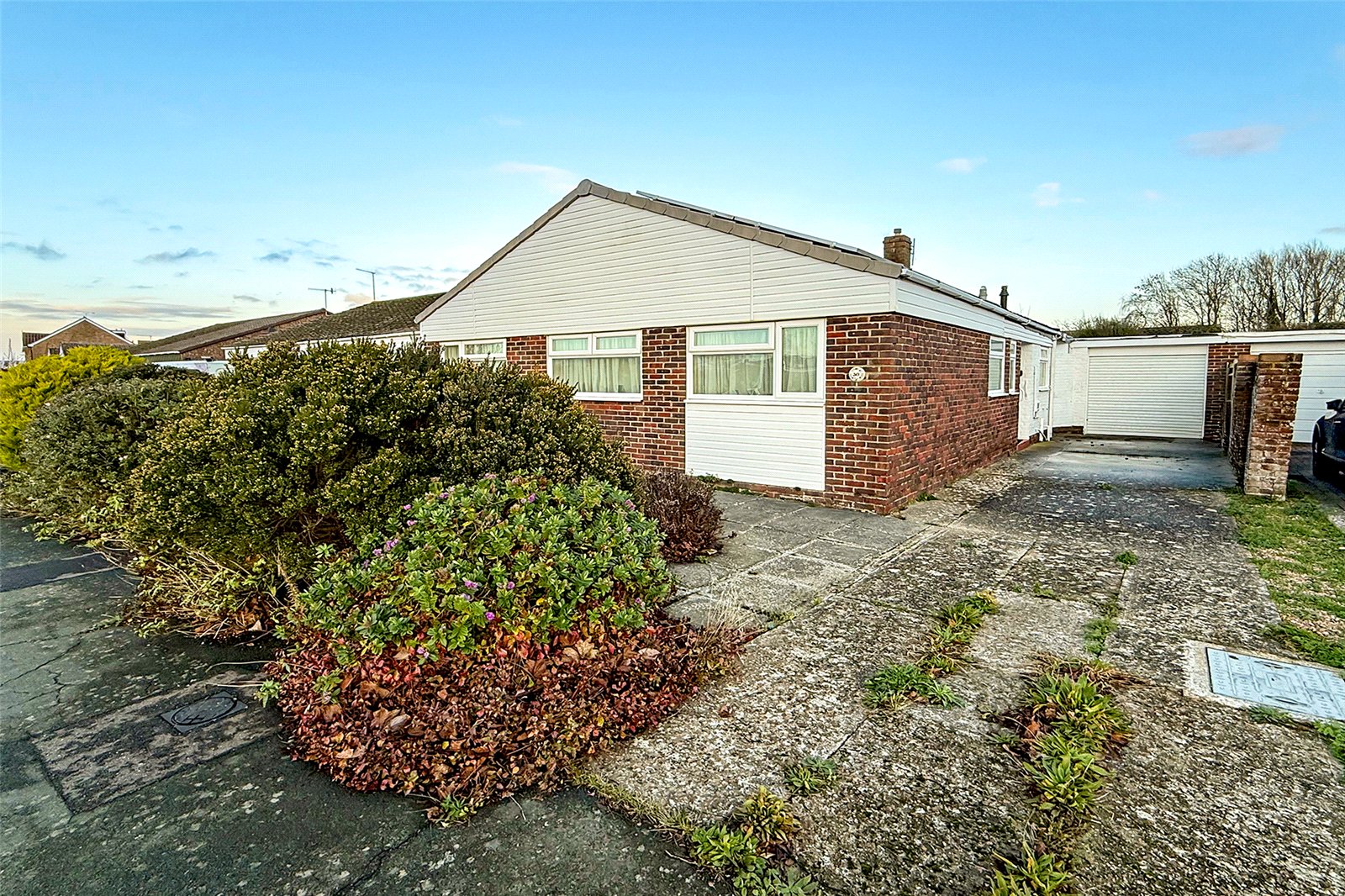 Packed with potential and positioned perfectly between Rustington and Littlehampton, this extended two double bedroom detached bungalow offers a fantastic opportunity to create your ideal home in the sought-after Beaumont Park. Just a short walk from local shops, amenities, and green spaces, the location is as convenient as it is popular. The property sits on a generous plot with a large private driveway to the front providing ample off-road parking, and a garage to the rear, which is accessible via the rear garden with an electric door. The garden itself is mainly laid to lawn, with a sunny patio area at the front and handy side access. Inside, youll find two spacious double bedrooms, both with built-in storage, a family bathroom, and a separate WC for added convenience. The living/dining room is a fantastic size and has been extended to create a bright, open space with double patio doors leading out to the rear garden. This versatile room wraps around into the fitted kitchen, with an adjoining utility room offering even more practicality. The bungalow is also equipped with a brand new boiler, gas central heating, double glazing throughout, and the added benefit of solar panels, helping to improve energy efficiency and reduce bills. This is a rare chance to secure a well-located detached bungalow with scope to update, extend further (STP), or simply move in and make it your own. Viewing is highly recommended!