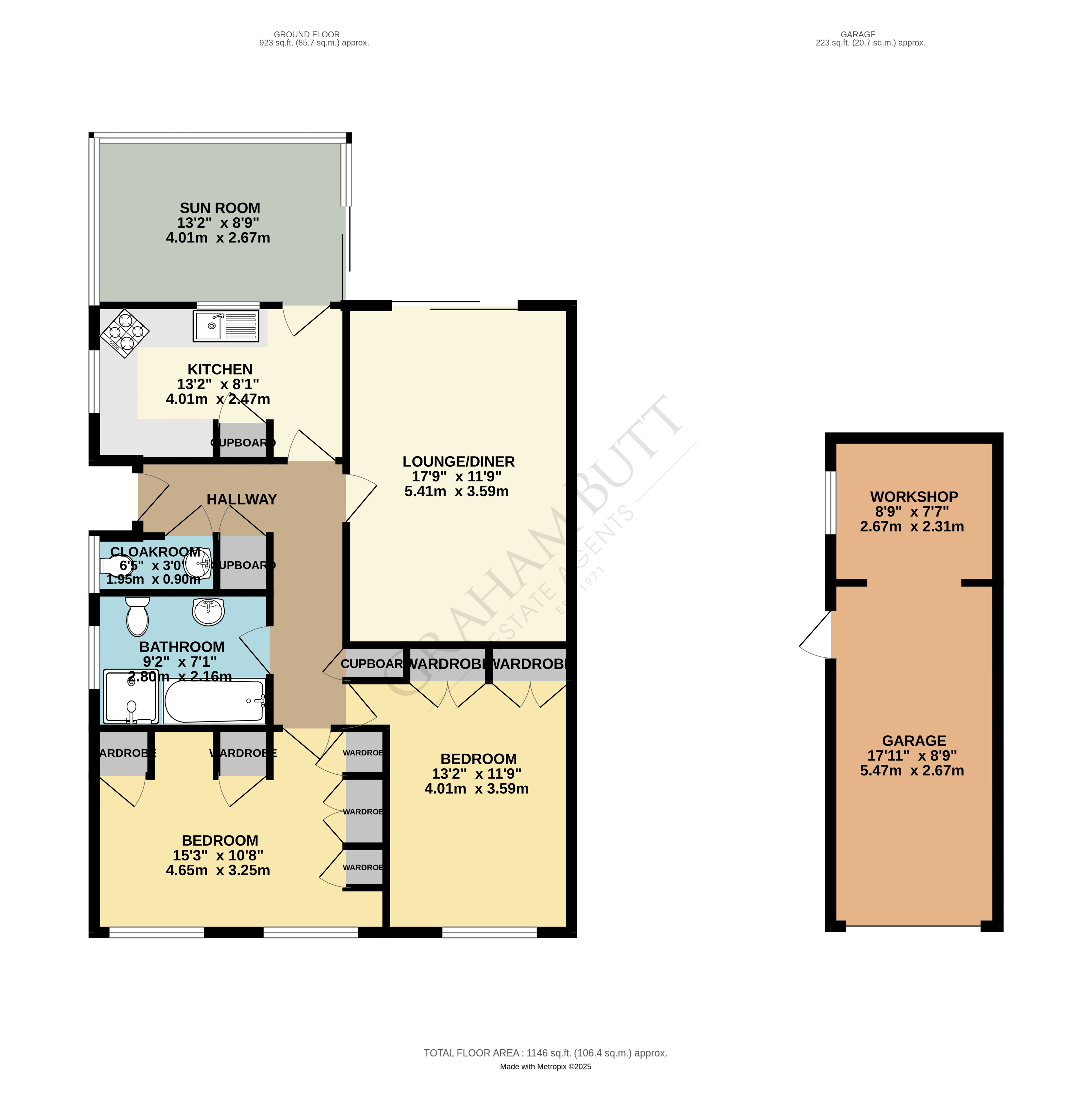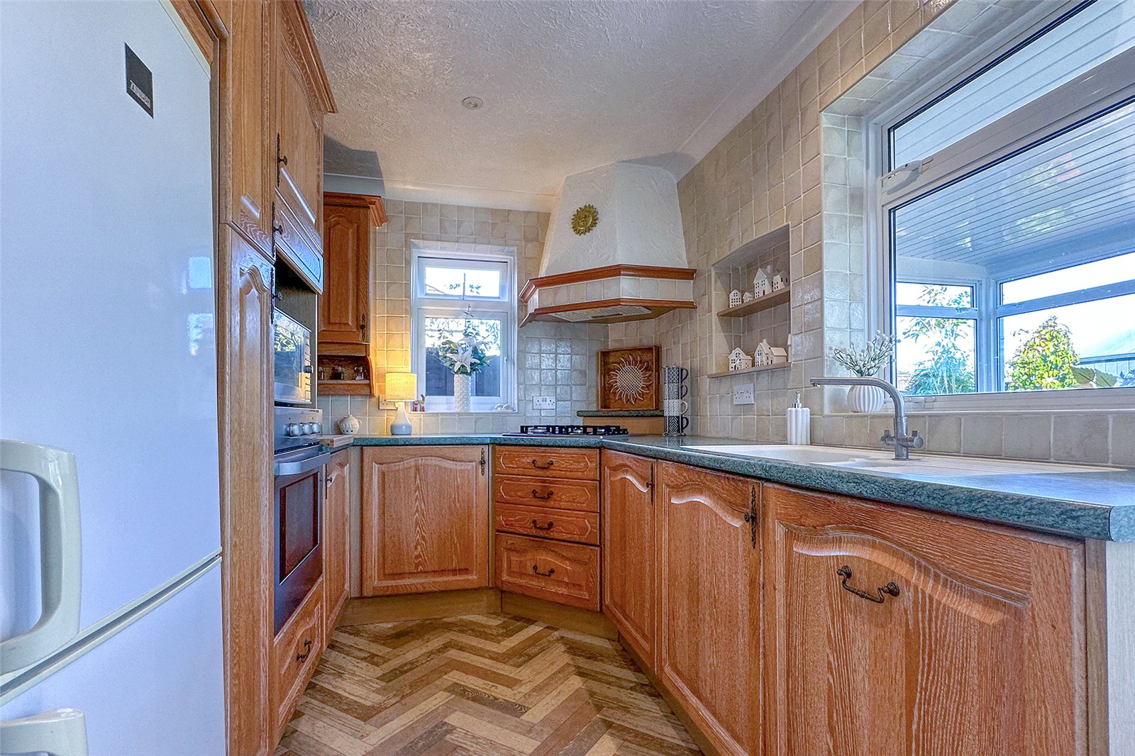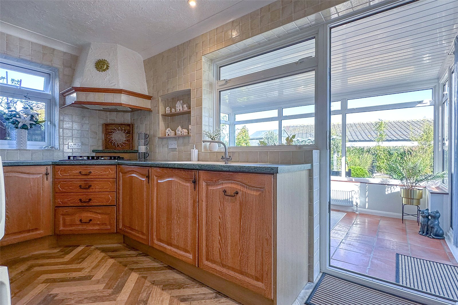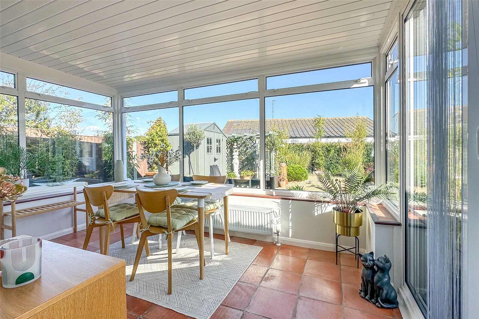 Internally, this bungalow is immaculately maintained, welcoming you through a central hallway that provides access to all principal rooms. A convenient separate W/C adds practicality, while the lounge offers a warm and inviting atmosphere, complete with patio doors that open directly onto the garden. The kitchen is thoughtfully designed for everyday use and flows seamlessly into the conservatory, which serves as a charming dining area bathed in natural light.