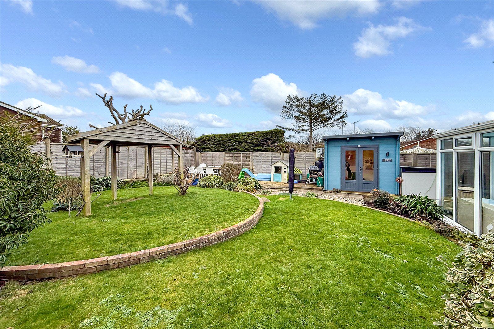 This beautifully presented four-bedroom detached home is ideally located within walking distance of the seafront and enjoys a stunning glimpse of the sea from two of the four bedrooms. Offered to the market in superb decorative order throughout, the property would make an ideal family home. To the front, there is a double-width driveway providing ample off-road parking, along with a integral garage fitted with an electric door. To the rear, the property boasts an extremely well-maintained private garden, perfect for entertaining or relaxing. The garden also features a fully equipped home office with power, heating and air conditioning, making it ideal for remote working or a variety of uses. Internally, the accommodation is both spacious and versatile. The kitchen is complemented by a separate dining area and access out onto the utility space/lean-to which is located to the side of the property, adding further practicality. The generous living room features bi-folding doors that open into a conservatory, creating a bright and inviting space. The ground floor also offers a games room, a cloakroom, and internal access to the garage. Upstairs, four well-proportioned bedrooms are arranged over the first floor, with a modern family bathroom and loft access.
