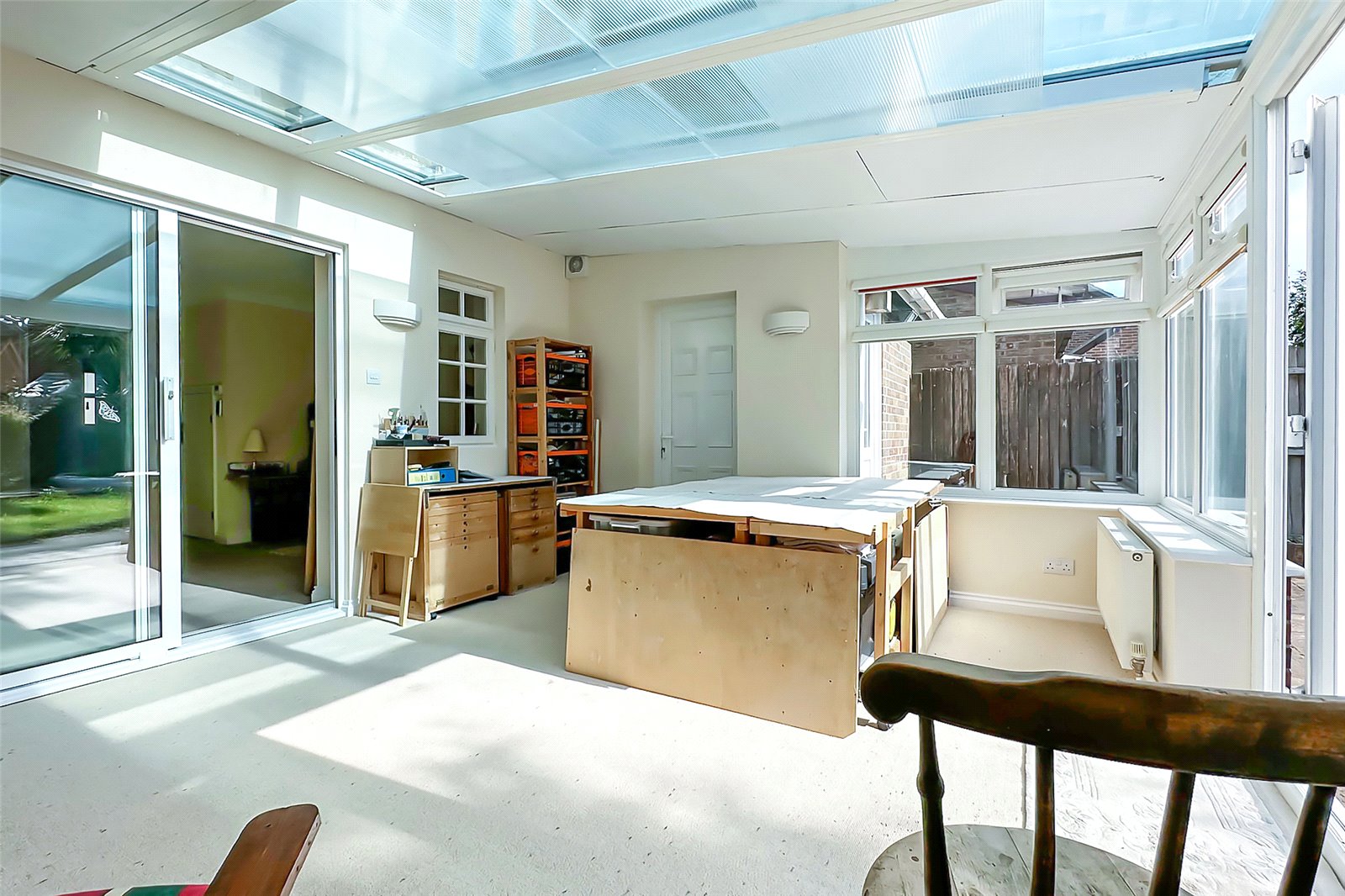Externally, the property enjoys a long driveway leading to a private garage, and the rear garden offers a tranquil, sun-drenched retreat.