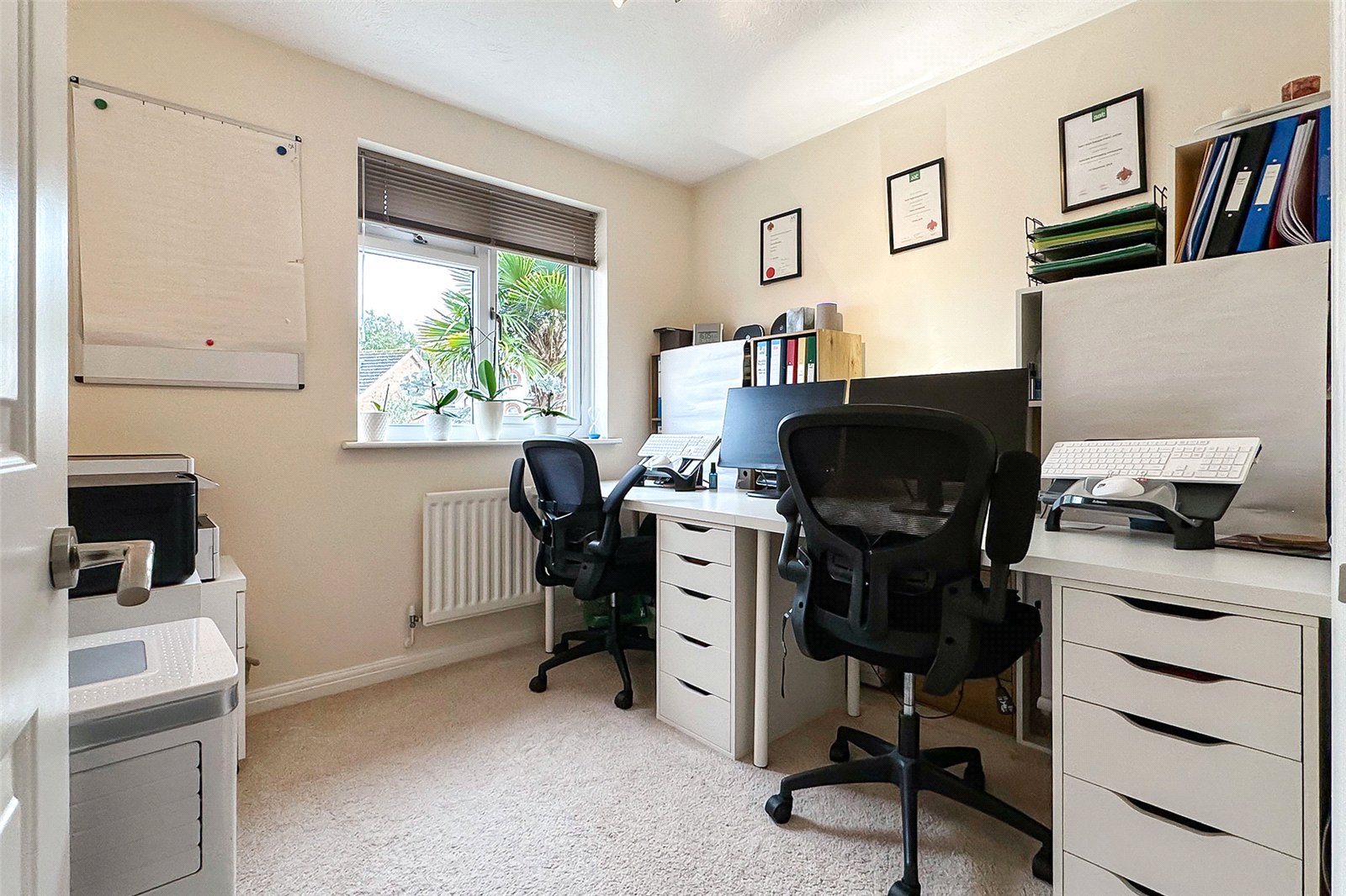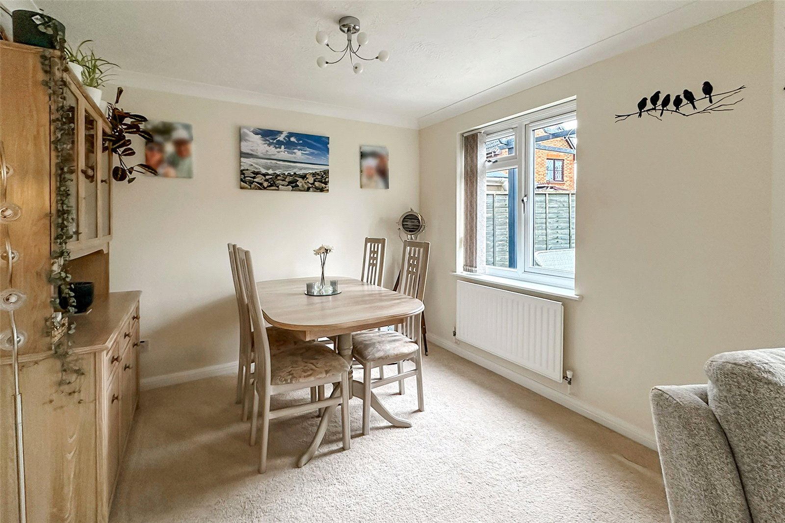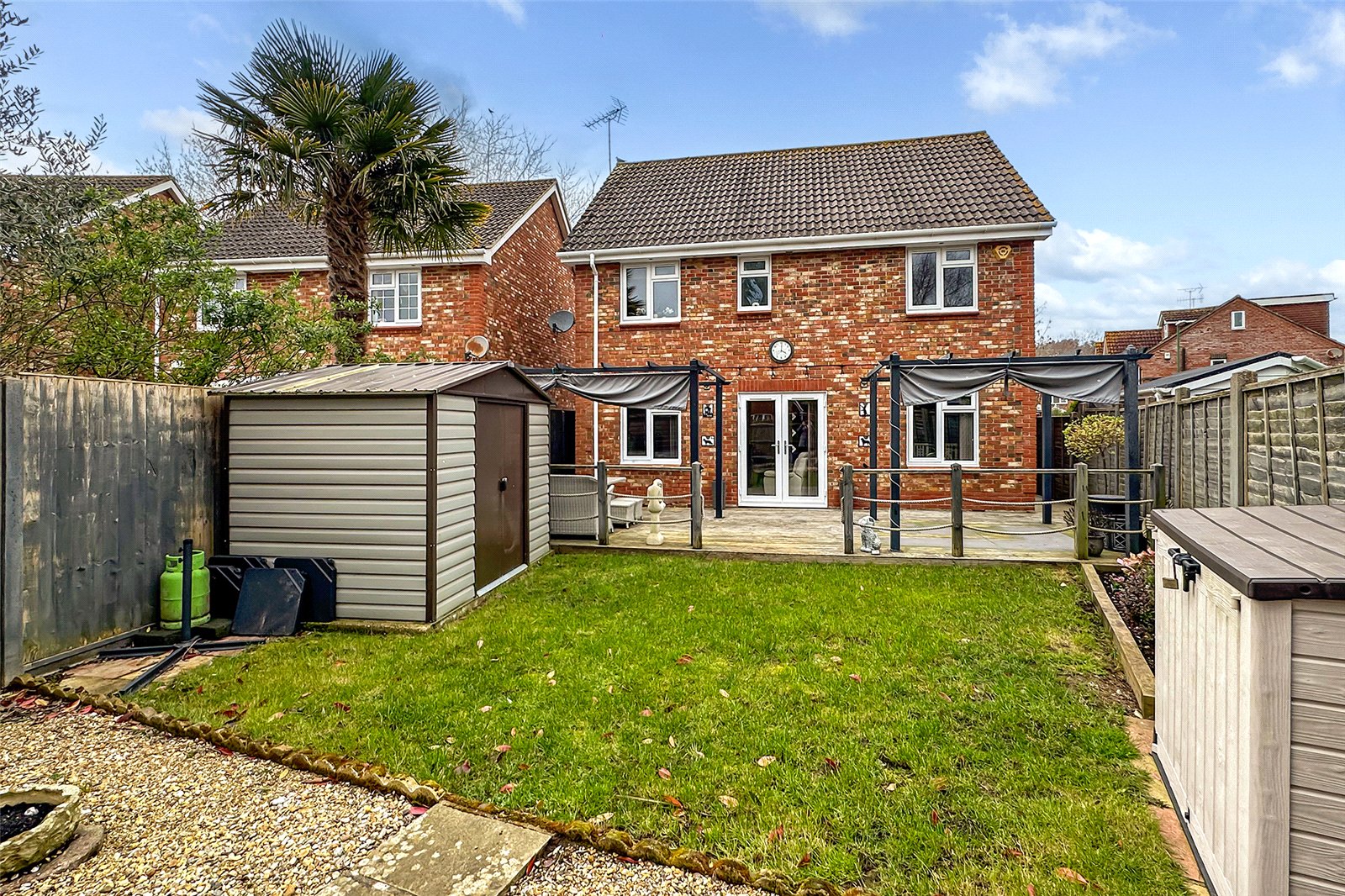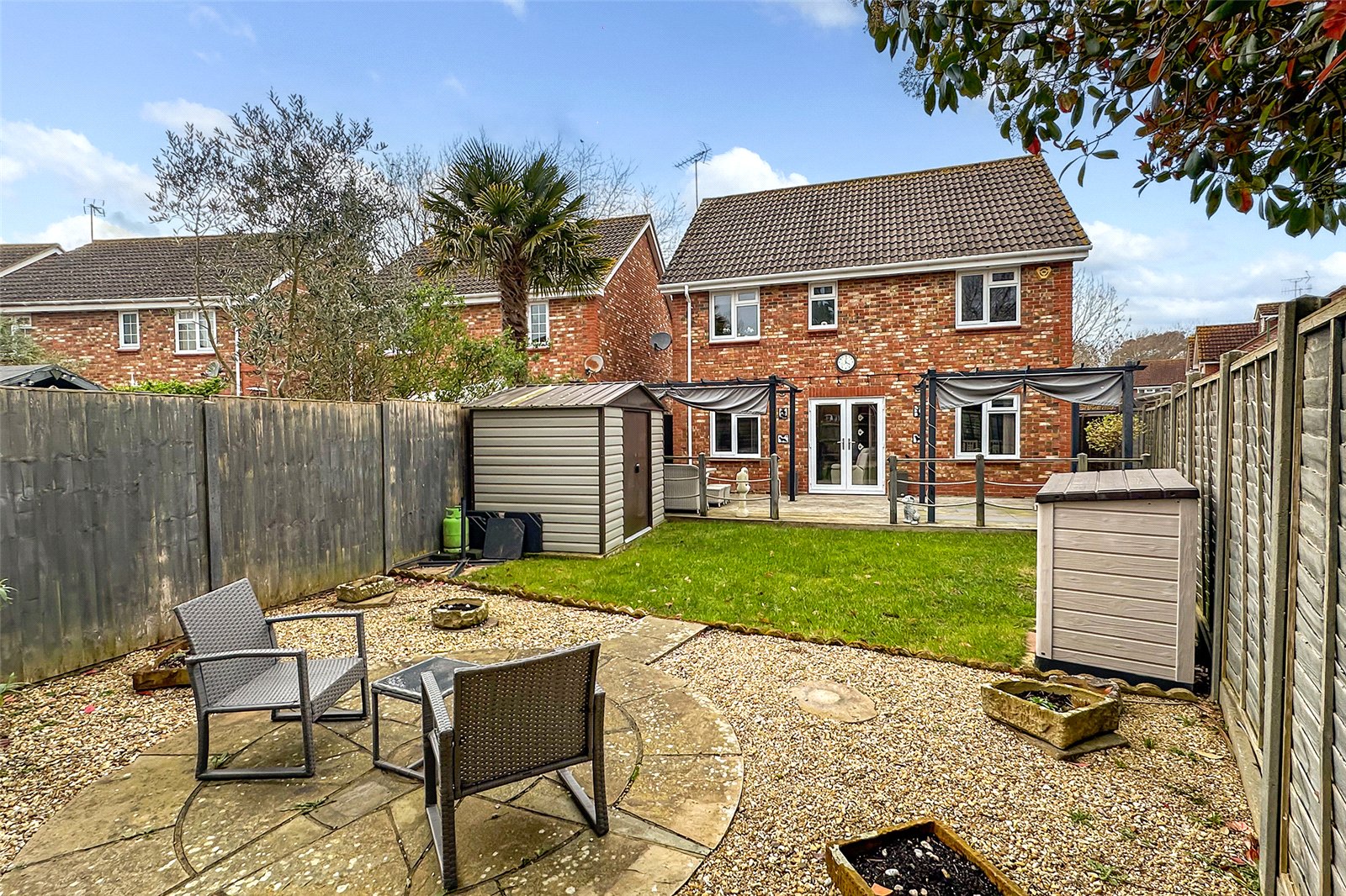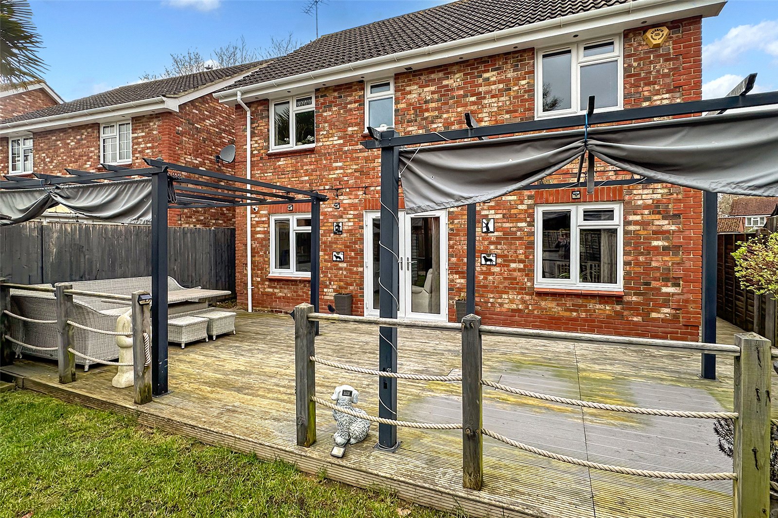 This immaculately presented four-bedroom detached home provides bright, stylish and well-proportioned accommodation, ideally suited to modern family life with excellent space for entertaining. The main living area is arranged in an open-plan lounge and dining space, with patio doors opening onto the landscaped rear garden to create a seamless indoor-outdoor flow. The front-facing kitchen is well equipped and further complemented by a separate utility room.Upstairs, the home offers four generous bedrooms, including a principal suite with en-suite, along with a well-appointed family bathroom. Outside, the low-maintenance rear garden features a large decked area, lawn and raised planted borders, while to the front there is a private driveway providing ample parking and access to the garage.