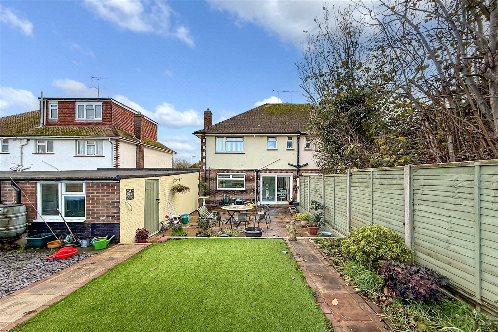 Discover the perfect blend of space, style and convenience in this bright and beautifully presented three-bedroom semi-detached home. Set in a sought-after location, it offers superb kerb appeal with driveway parking for at least two cars, a garage, and well presented, low-maintenance gardens to the front and rear. Step inside to a light-filled dual-aspect living room with a charming feature fireplace. The open-plan kitchen/dining room is the heart of the home, boasting a fitted kitchen, a generous dining area and patio doors that seamlessly connect you to the garden. The rear garden has been designed with easy upkeep in mind, offering a large patio for entertaining, artificial lawn for year-round convenience, and handy side access to both the driveway and the garage. Upstairs, youll find three well-proportioned bedrooms along with a contemporary shower room and loft access. With double glazing and gas central heating throughout, this home is warm, efficient, and move-in ready. A fantastic opportunity not to be missed! Book your viewing today!