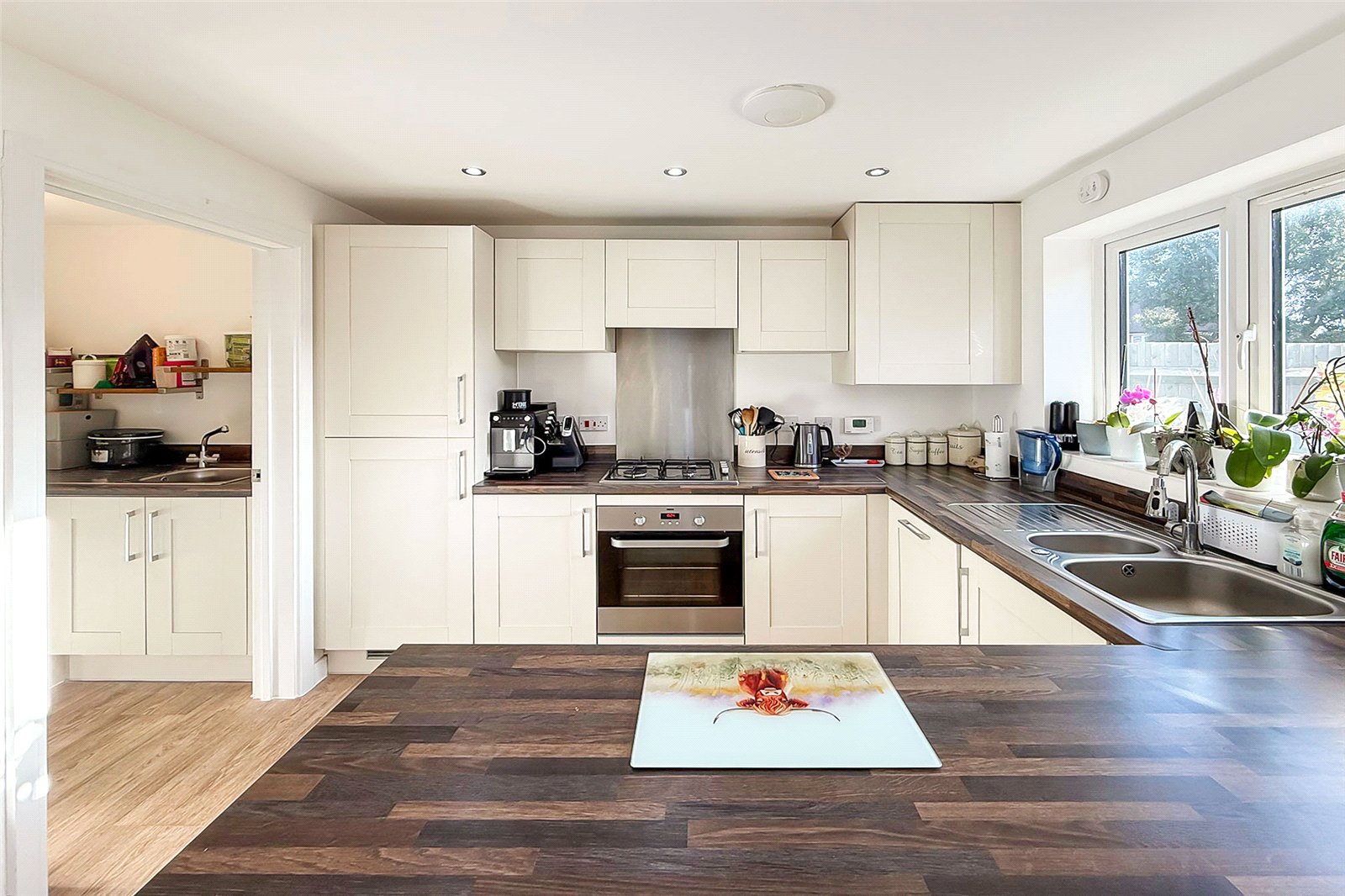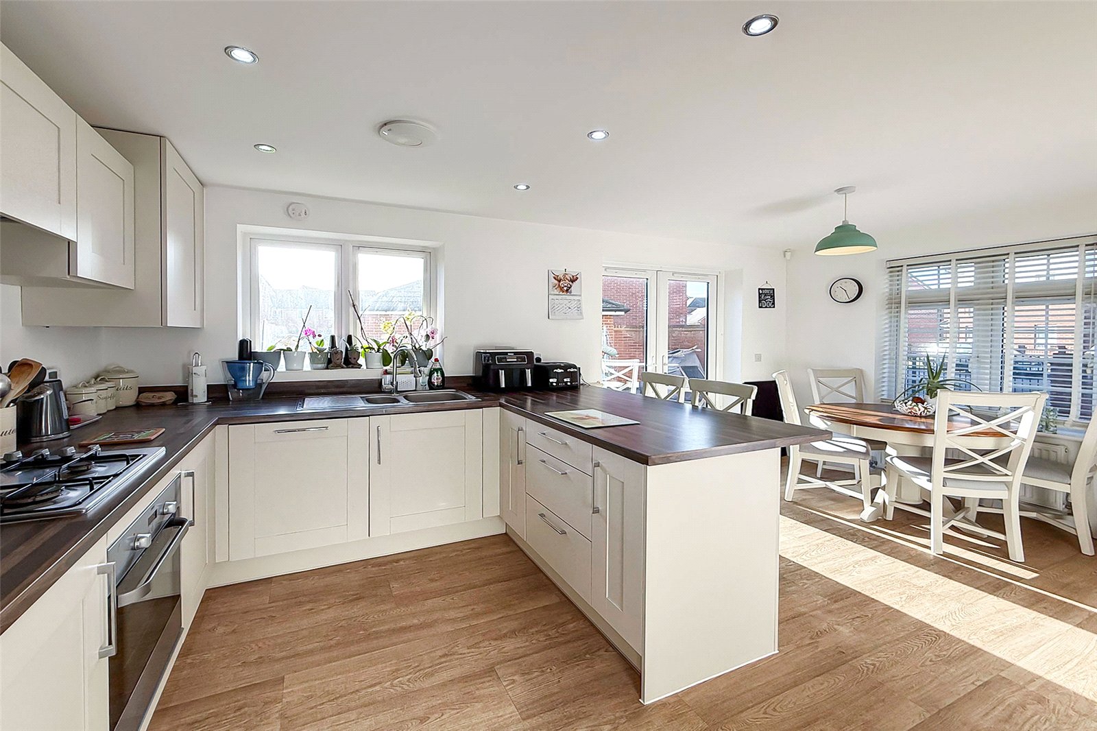 A MUST SEE! This stylish and well-designed three-bedroom home offers spacious modern living throughout. The dual aspect living room provides the perfect place to unwind, while the contemporary kitchen/dining room to the rear is ideal for both everyday life and entertaining, complete with a breakfast bar/island, separate utility room and downstairs WC in the hallway. Upstairs features three well-proportioned bedrooms, the main bedroom comes with an en-suite shower room, plus there is an additional family bathroom. Outside, the property benefits from a garage which is directly accessible from the private rear garden and off-road parking in front. Finished to a modern standard and located in the sought-after area of Kingley Gate, this home perfectly balances comfort, space, and practicality. Viewing is highly recommended!