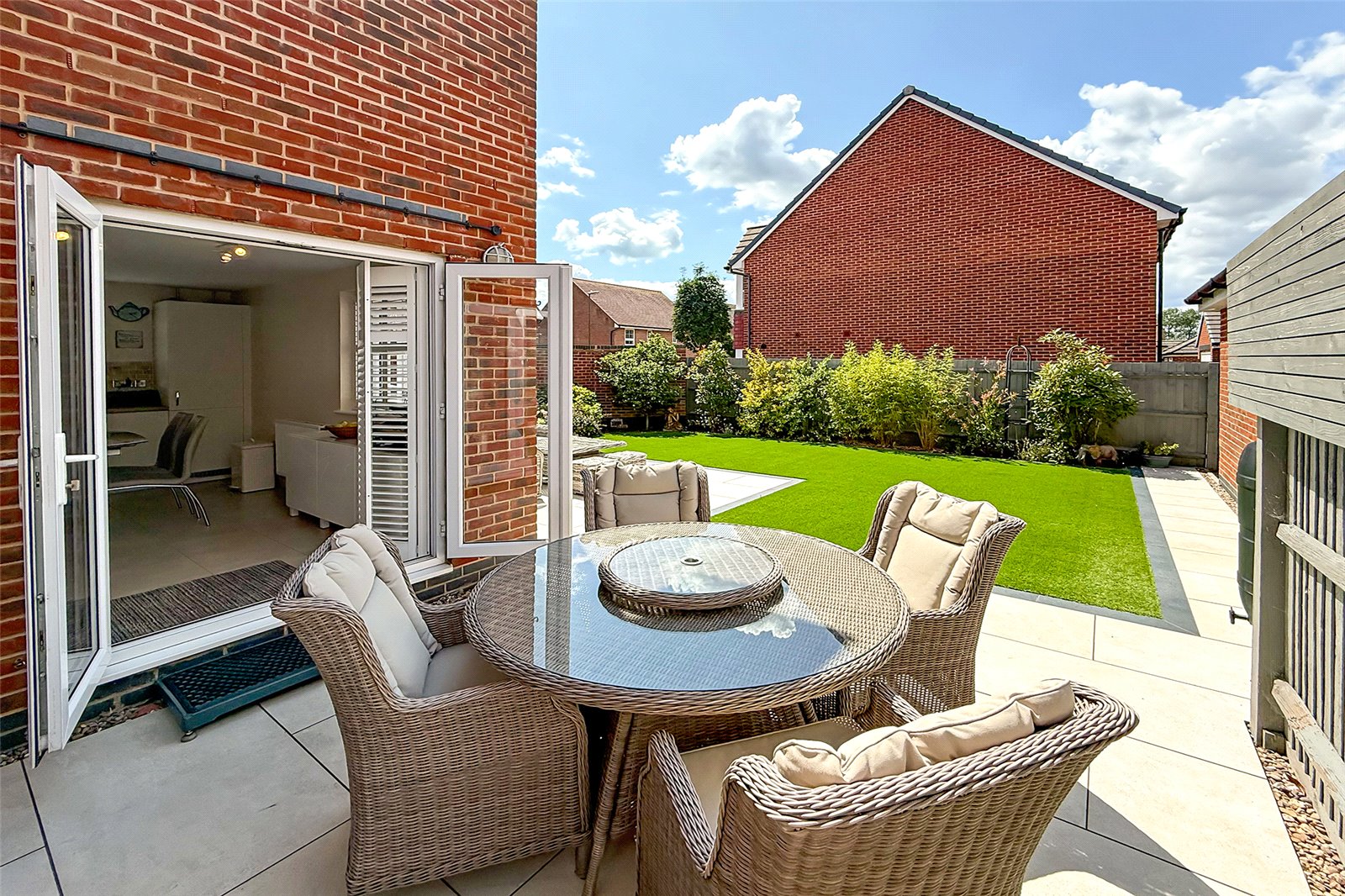 Presented in true show home condition, this stunning four-bedroom detached house offers stylish, spacious living in one of Littlehamptons most sought-after locations. Step inside to a generous dual-aspect lounge, filled with natural light and featuring double patio doors that lead directly onto the beautifully landscaped garden patio. There's also a versatile separate dining room; ideal as a formal space or cosy snug, and an exquisite kitchen/breakfast room with plenty of space for a table or island unit, making it the true heart of the home with additional access out into the garden. A handy cloakroom completes the ground floor. Upstairs, the main bedroom is a fantastic size complete with a modern en-suite shower room, built-in wardrobes, and a fitted air conditioning unit for year-round comfort. Two further double bedrooms also offer fitted wardrobes, while the fourth bedroom makes an ideal home office or single bedroom. A modern family bathroom adds to the homes well-thought-out layout. The landscaped rear garden is a real showstopper, featuring a porcelain-tiled patio, low-maintenance artificial lawn, and well-kept borders, perfect for relaxing or entertaining. Youll also find a private driveway leading to the garage, which has convenient side access into the garden. Additional highlights include double glazing, gas central heating, and premium fitted shutters in most rooms. Early viewing is essential to avoid missing out!