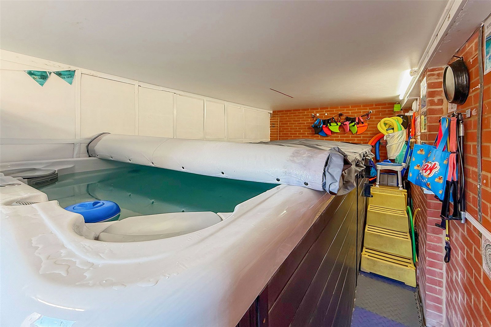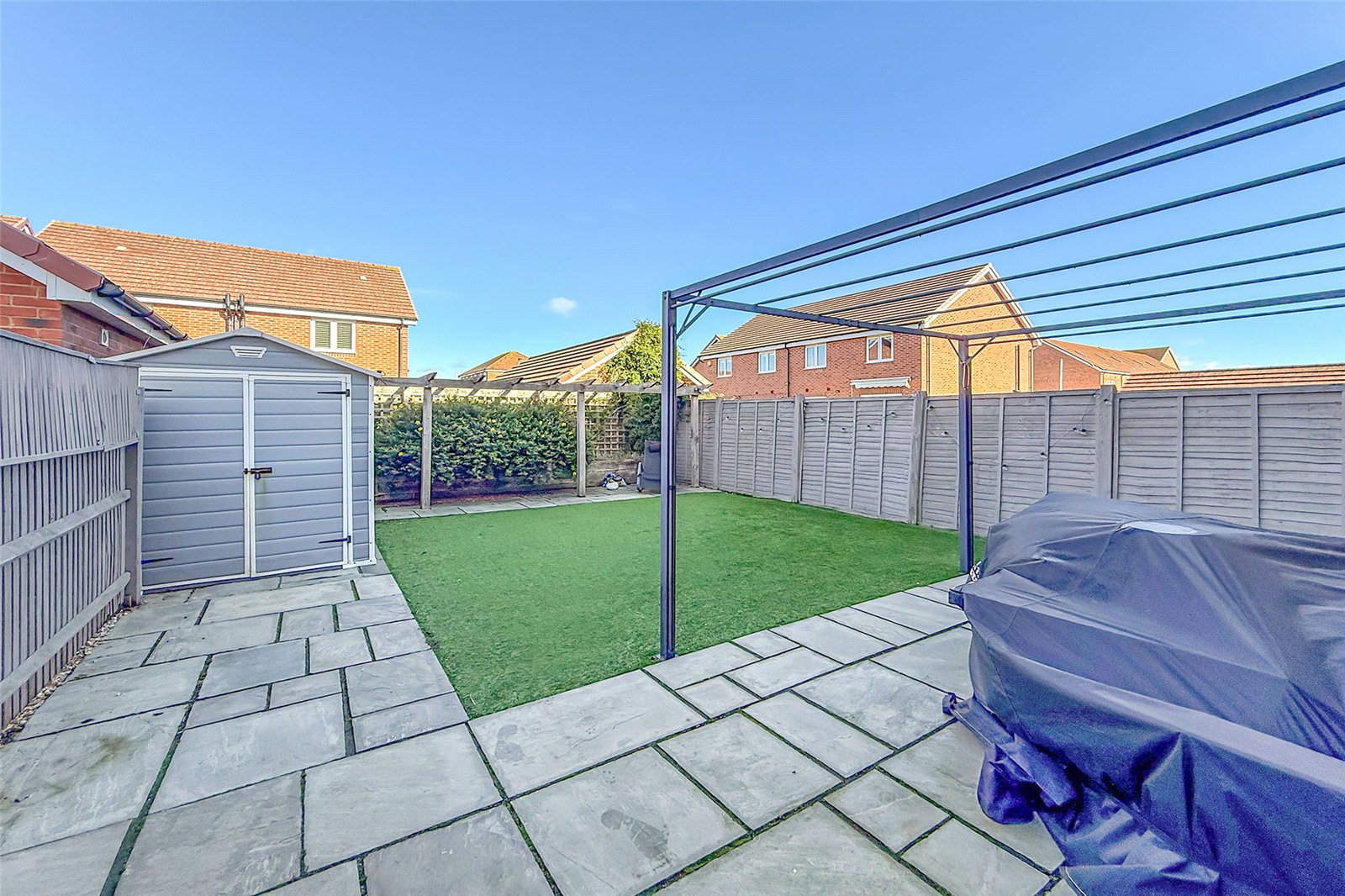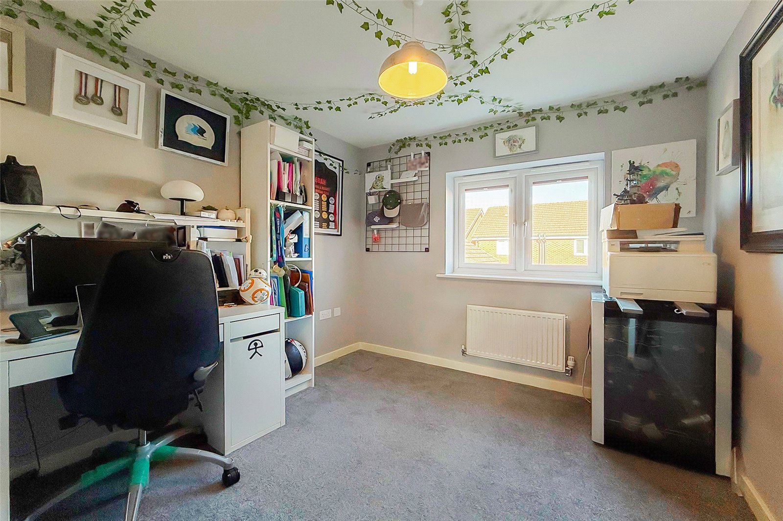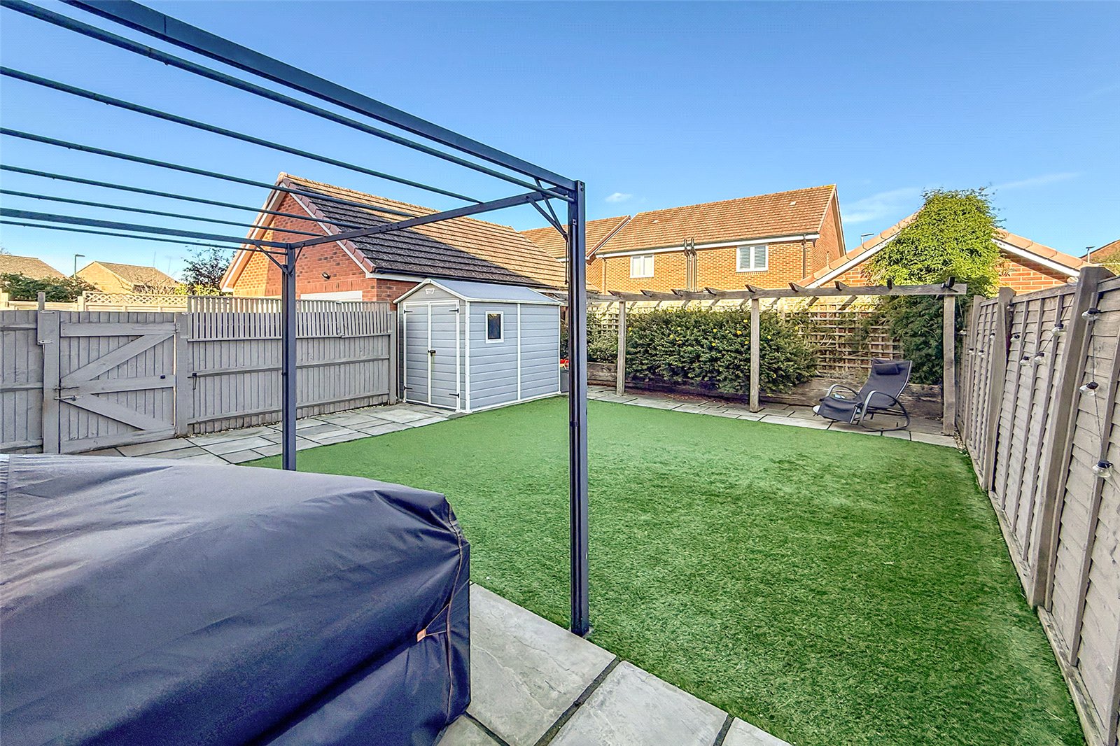 This spacious four-bedroom detached home, set across three generous floors, offers versatile and contemporary family living in a highly desirable location. Outside, the property features a beautifully landscaped and low-maintenance private rear garden with artificial grass, a patio seating area, and side access. There is garage with power and lighting, fitted with a swim spa, which may be available as part of the sale. To the side, a private driveway provides secure off-road parking for at least two/three vehicles, in addition to an allocated parking space directly opposite and visitor bays for guests. Inside, the ground floor welcomes you with a bright and inviting living room to the front, a cloakroom, and a modern open-plan kitchen/dining area; perfect for family gatherings and entertaining. The kitchen features double patio doors opening onto the rear garden, flooding the space with natural light, and also benefits from a separate utility room for added convenience. On the first floor, there are three well-proportioned bedrooms, including one with its own en-suite shower room, plus a contemporary family bathroom. The top floor is dedicated to the spacious main bedroom, complete with a modern en-suite shower room and ample storage. This superb home combines modern comfort with thoughtful design, offering plenty of space for growing families. Viewing is highly recommended!
