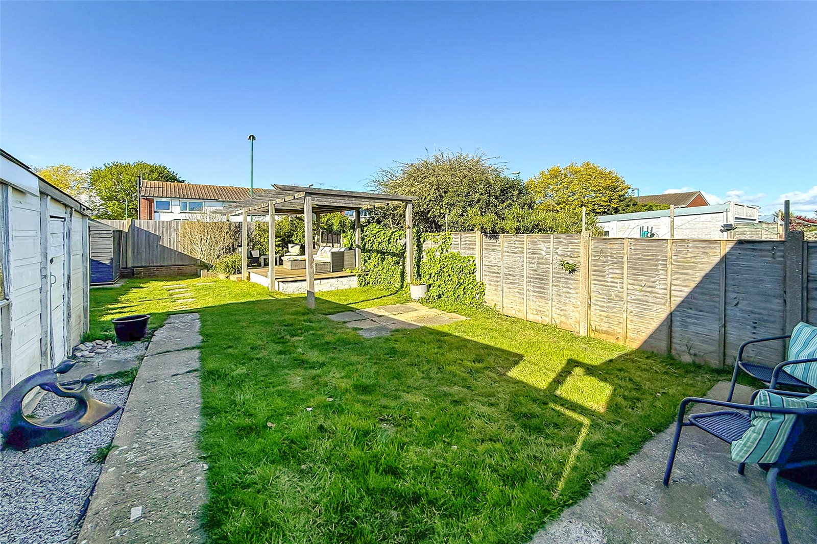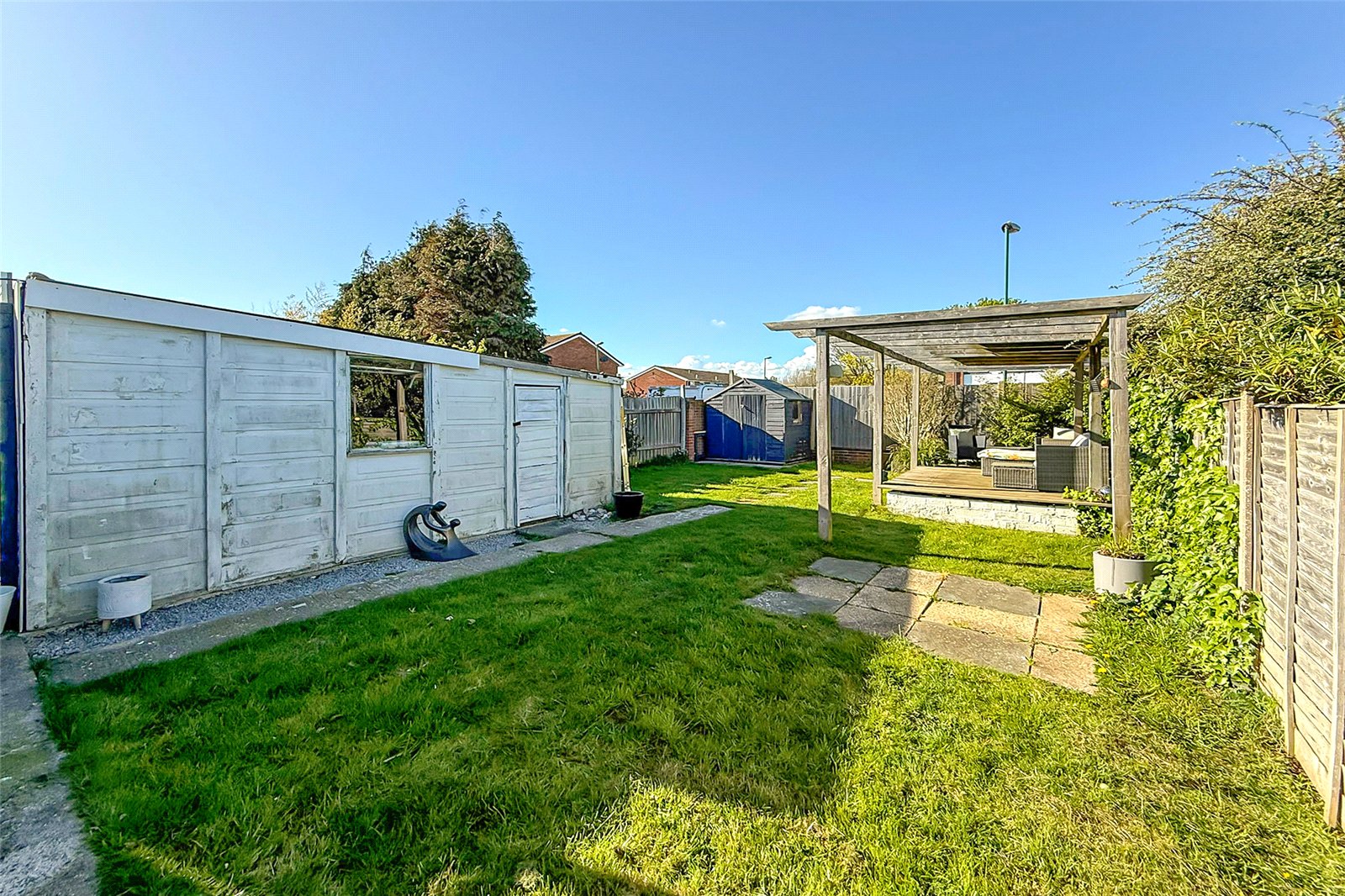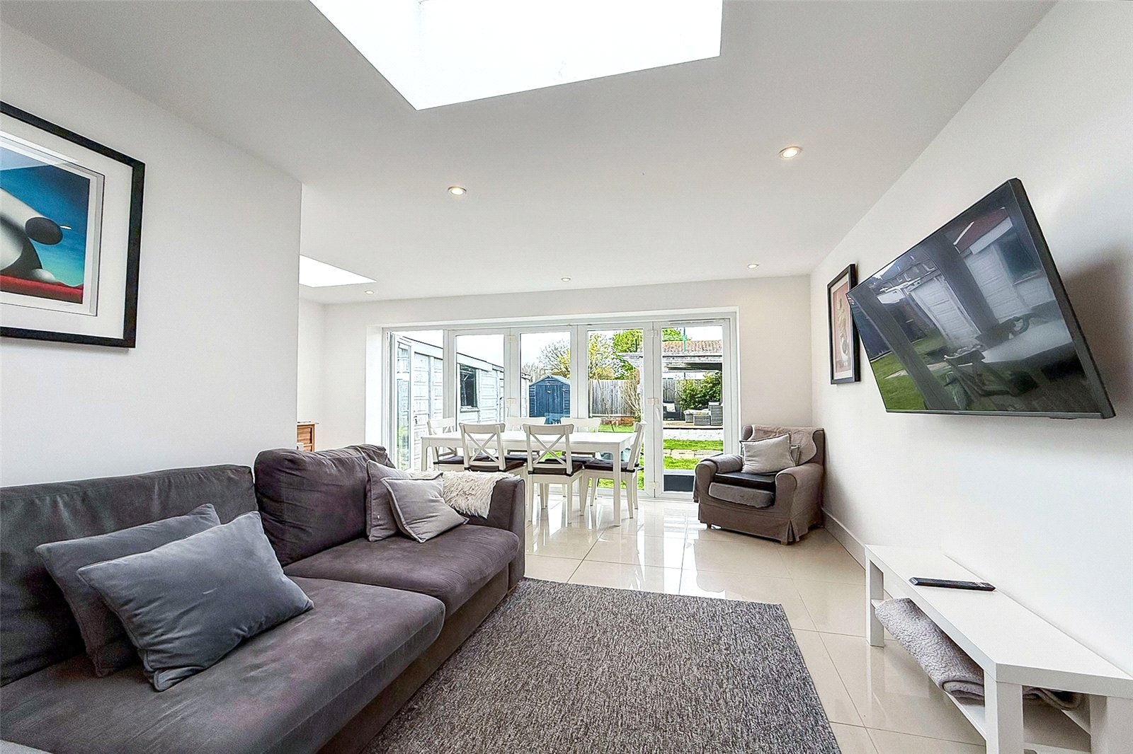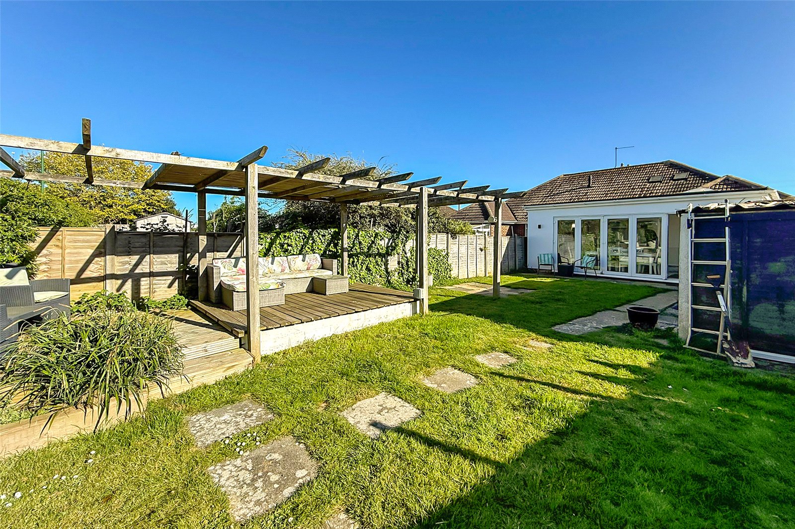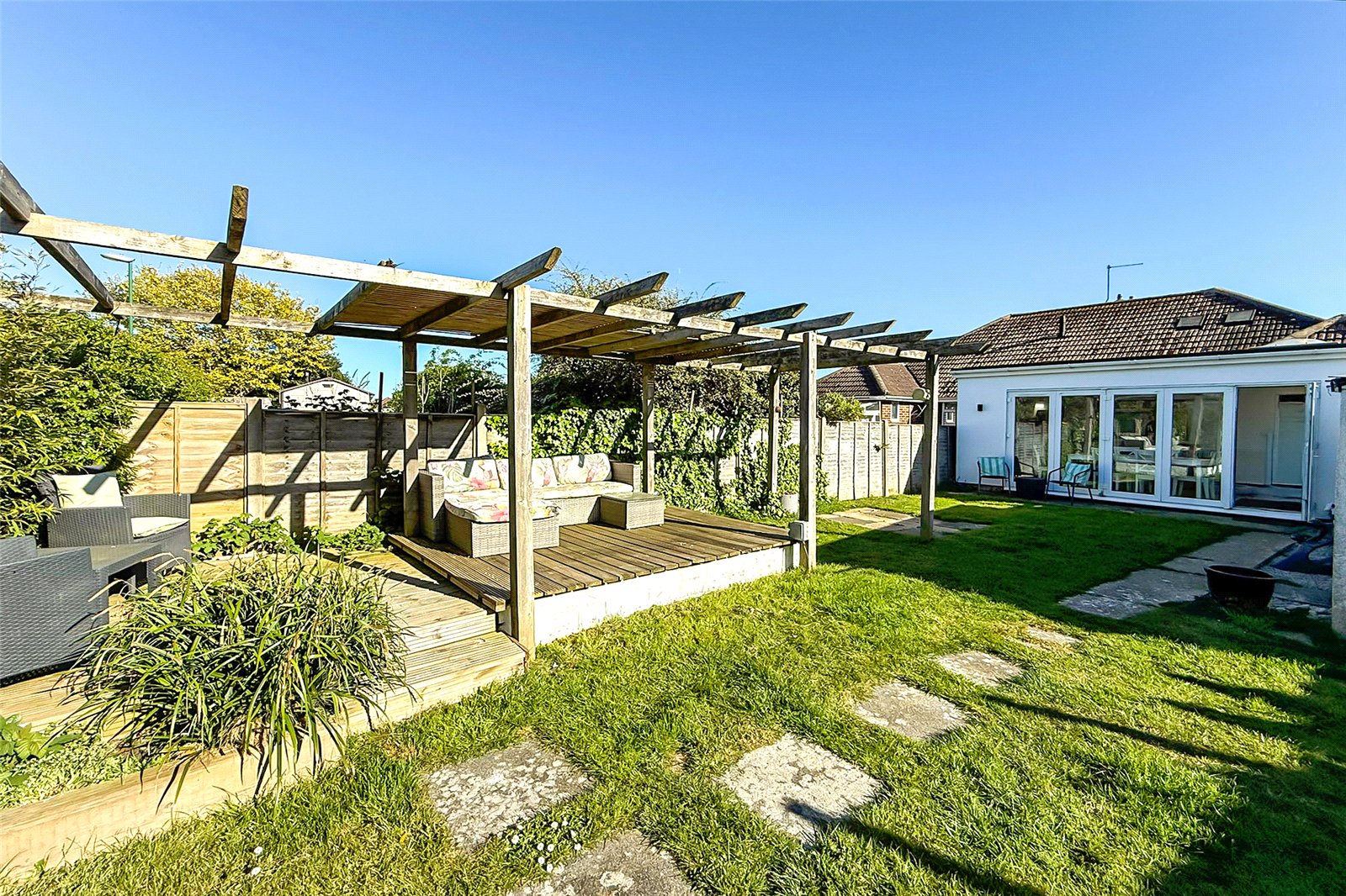 Offered with no onward chain, this beautifully presented and thoughtfully extended semi-detached bungalow delivers stylish, spacious living in a move-in-ready package. Inside, the welcoming entrance hall leads to three generously sized double bedrooms, perfect for families, guests, or flexible home working. The standout feature is the impressive L-shaped living and dining space; flooded with natural light from two boxed skylights and enhanced by full width bi-fold doors that open seamlessly onto the rear garden, creating the perfect indoor-outdoor flow. The modern fitted kitchen offers ample storage and workspace, while a contemporary shower room adds a touch of luxury. The bungalow is double glazed with gas-fired central heating throughout for year-round comfort. For those looking to grow, the property also offers exciting potential for further extension via a loft conversion, subject to the necessary permissions. The generous rear garden is mainly laid to lawn and features a raised seating area beneath a modern pergola. A former garage has been cleverly converted into a highly practical storage room, adding valuable versatility. To the front, a driveway provides convenient off-road parking. Viewing is highly recommended!
