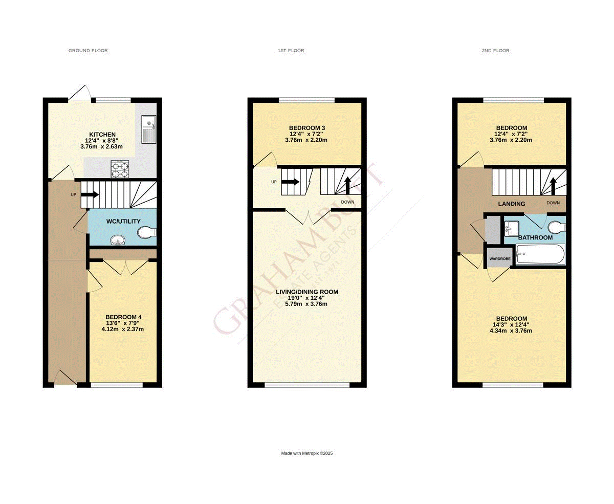 Conveniently situated within close walking distance to local schools, shops, and amenities, this spacious four-bedroom terraced house is offered to the market with the benefit of having NO ONWARD CHAIN! Set over three well-proportioned floors, the property enjoys pleasant views over a small green to the front. The garage has been thoughtfully converted to create a versatile fourth bedroom, complete with built-in wardrobes, offering additional flexibility for guests, a home office, or a playroom. The ground floor features a fitted kitchen overlooking the low-maintenance rear garden, and a downstairs WC with a useful utility space. On the first floor, youll find a generous living/dining room with ample space for a large dining table featuring a large picture window that fills the room with natural light, as well as a separate bedroom on this level. The top floor offers two further spacious bedrooms and a modern family bathroom, completing the excellent accommodation on offer. Further benefits include double glazing, gas central heating throughout, and the private rear garden providing a great outdoor space for relaxation or entertaining. Viewing is highly recommended to avoid missing out on this gem!