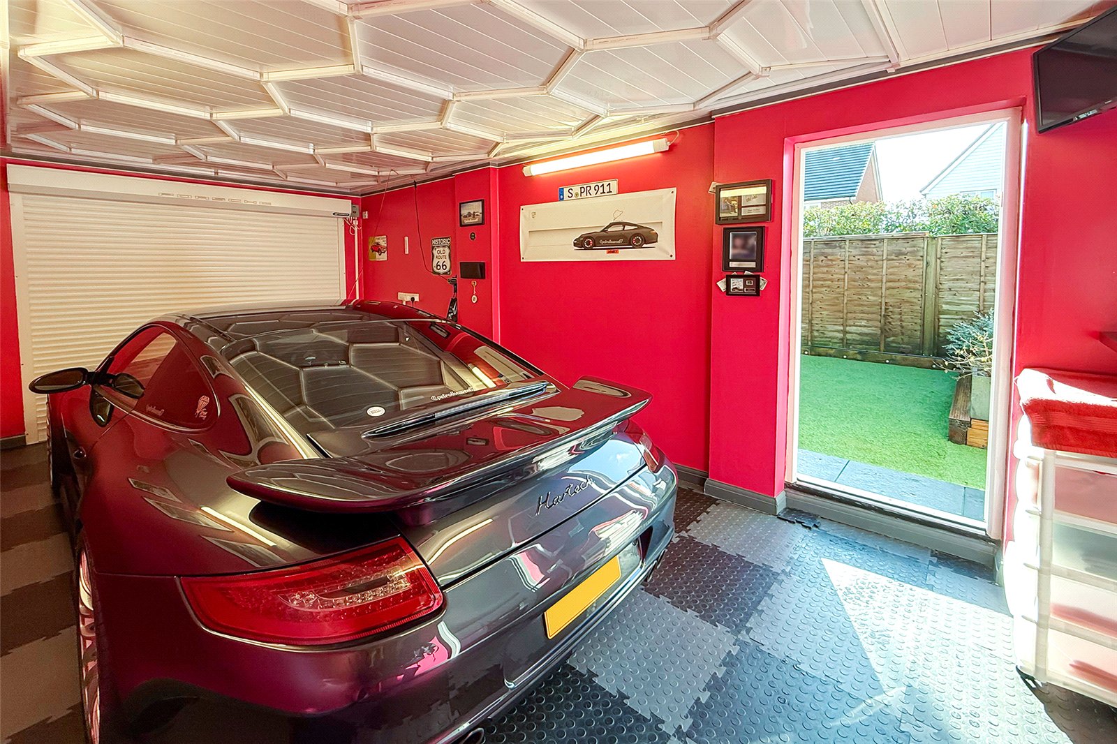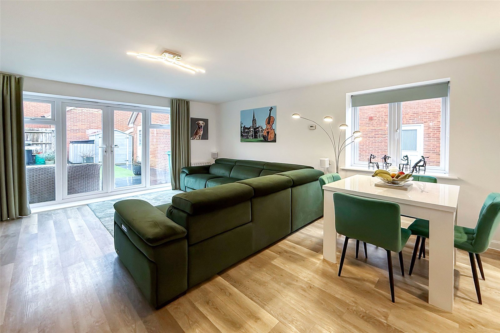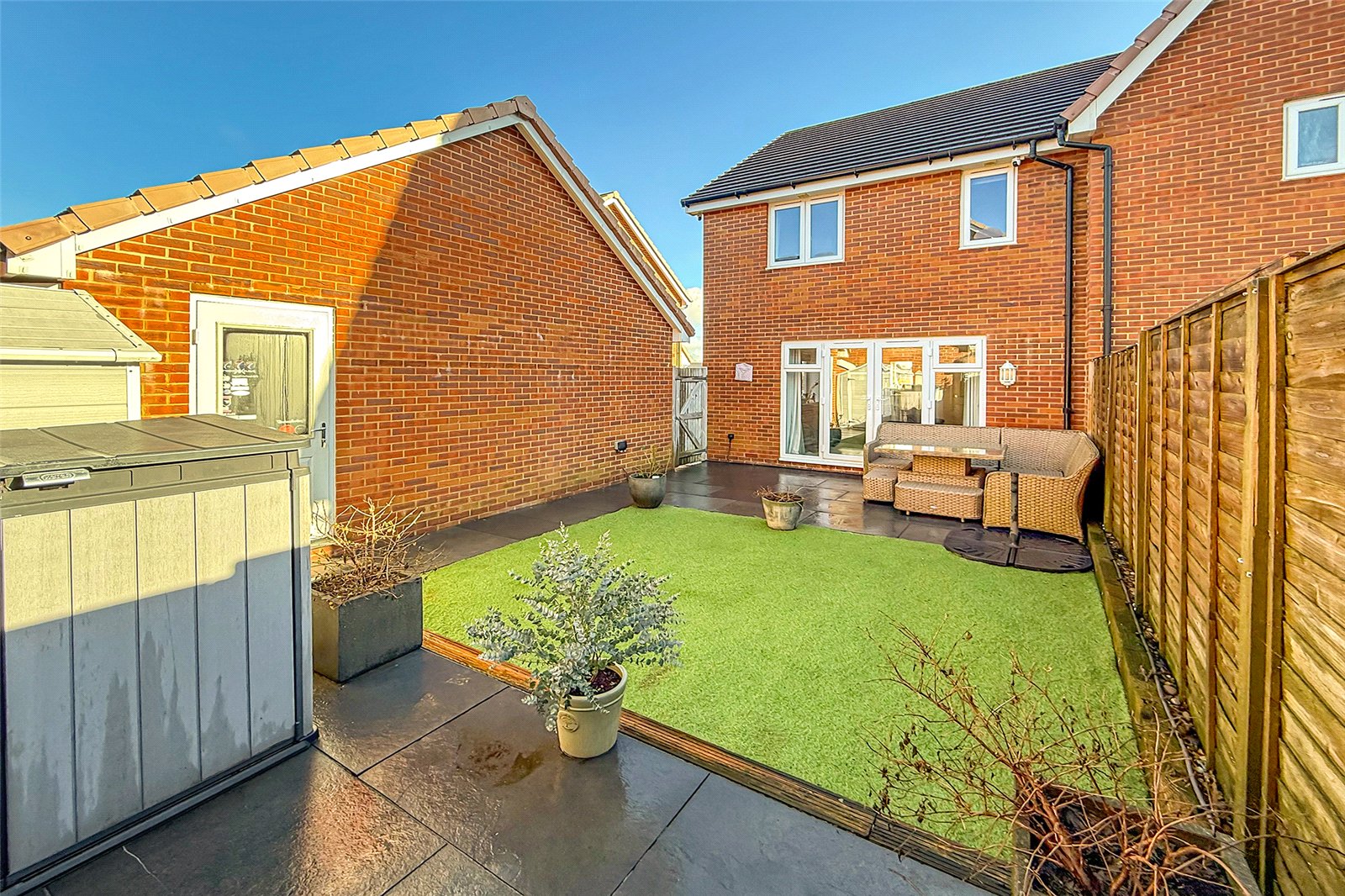 Tucked away from the road in a peaceful, sought-after position, this stylish three-bedroom semi-detached house is presented in show home condition throughout and offers the perfect blend of modern living, convenience and curb appeal. The ground floor features a welcoming cloakroom and an impressive open-plan living, dining and kitchen space, beautifully designed for both everyday living and entertaining. Double doors lead directly onto the private, landscaped, low-maintenance rear garden, creating a seamless indoor/outdoor flow ideal for summer evenings and social gatherings. From the garden, you can access the garage, which has been transformed into an exceptional workshop complete with an electric roller door, car charging point and direct access from the garden; perfect for hobbyists, creatives or those needing extra storage. Upstairs, youll find three generous bedrooms. The main bedroom boasts built-in wardrobes and a modern en-suite shower room. A further contemporary bathroom and loft access complete the upper floor. Additional highlights include double glazing, gas central heating, and a large driveway with space for up to three cars, providing fantastic parking options.