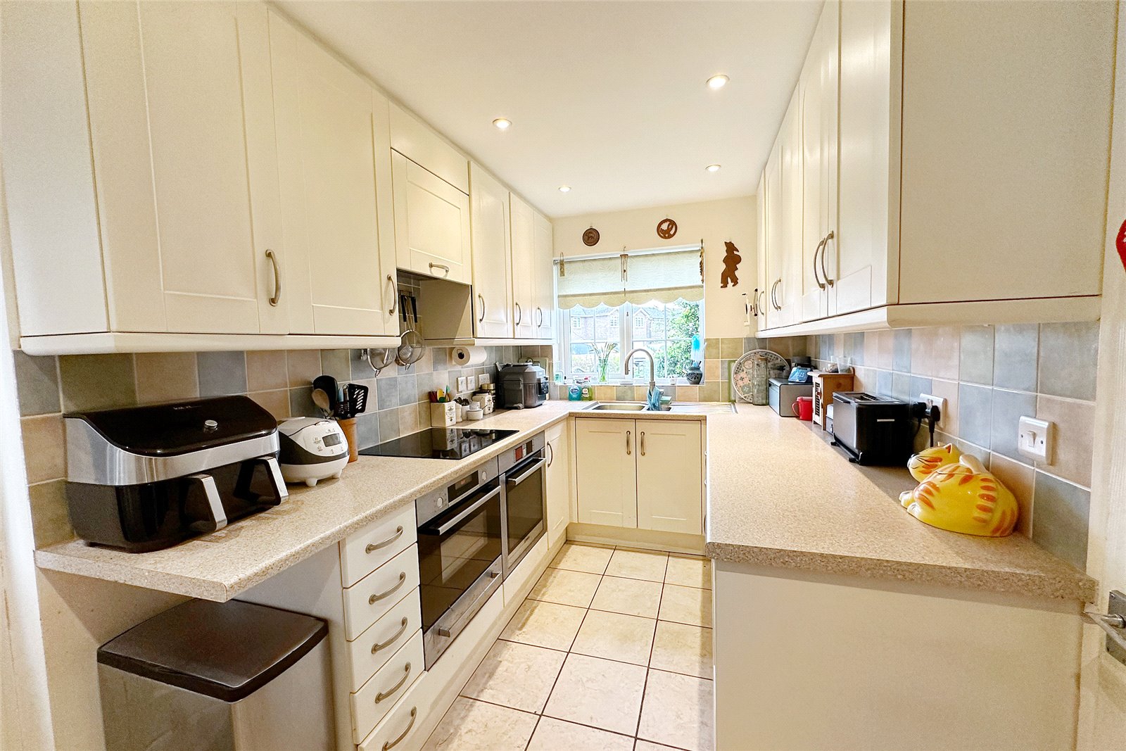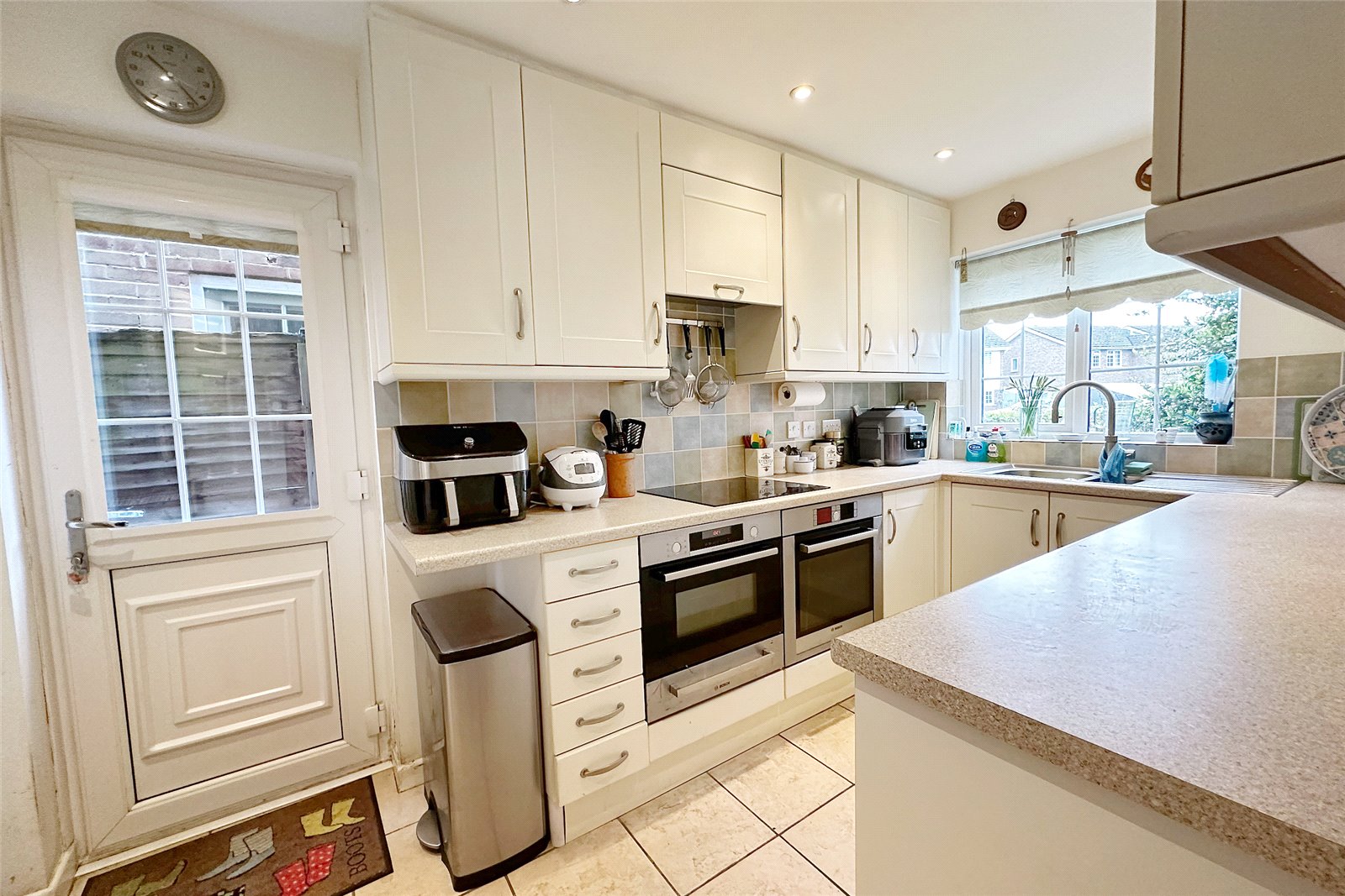 This impressive 4 bedroom detached property comprises an entrance porch, a downstairs cloakroom, an entrance halls leading to the fitted kitchen, with Bosch appliances including a fan oven with grill, a combi microwave and oven, a slimline dishwasher, a washer/dryer, a ceramic hob and extractor fan. The kitchen also features a Quooker tap with boiling water and cold filtered water, a waste disposal unit and a plinth heater.