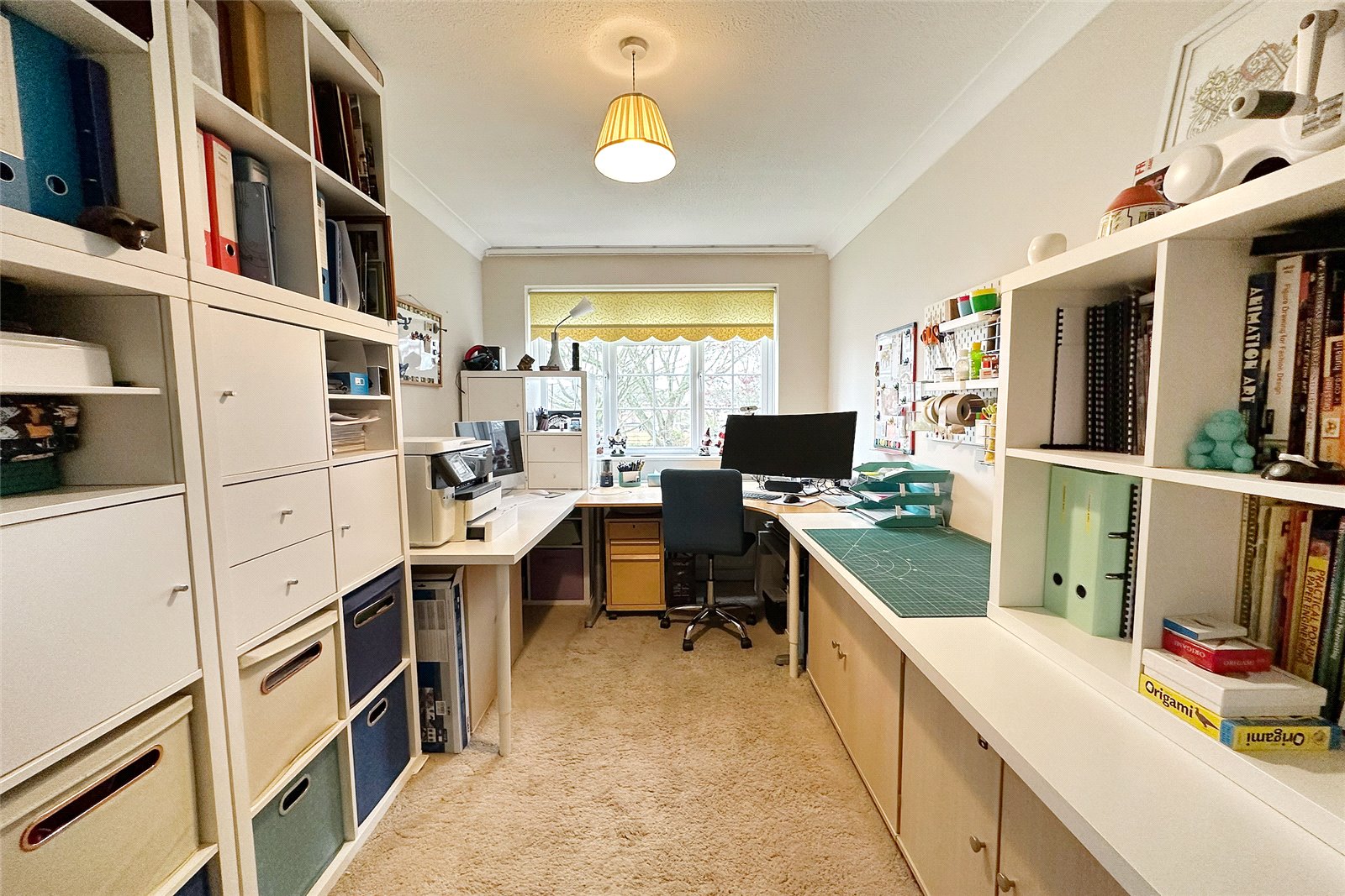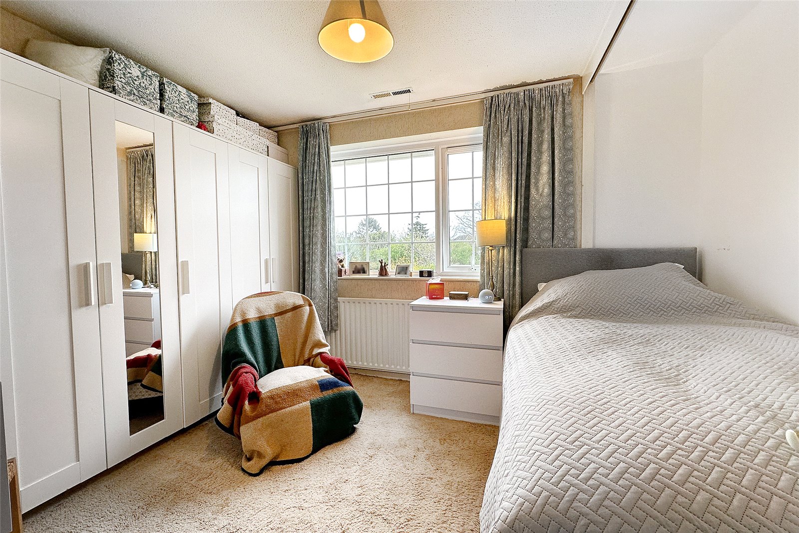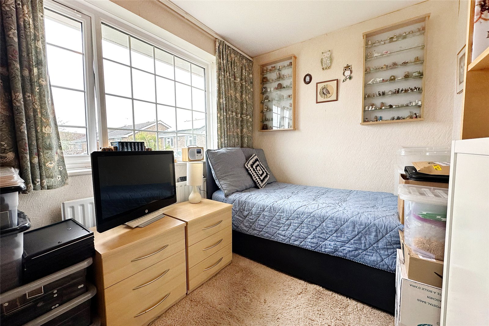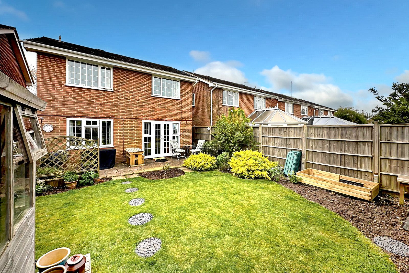 Outside, the rear garden is secluded, with mature borders and a storage shed. To the front is a driveway and a nice size front lawn.