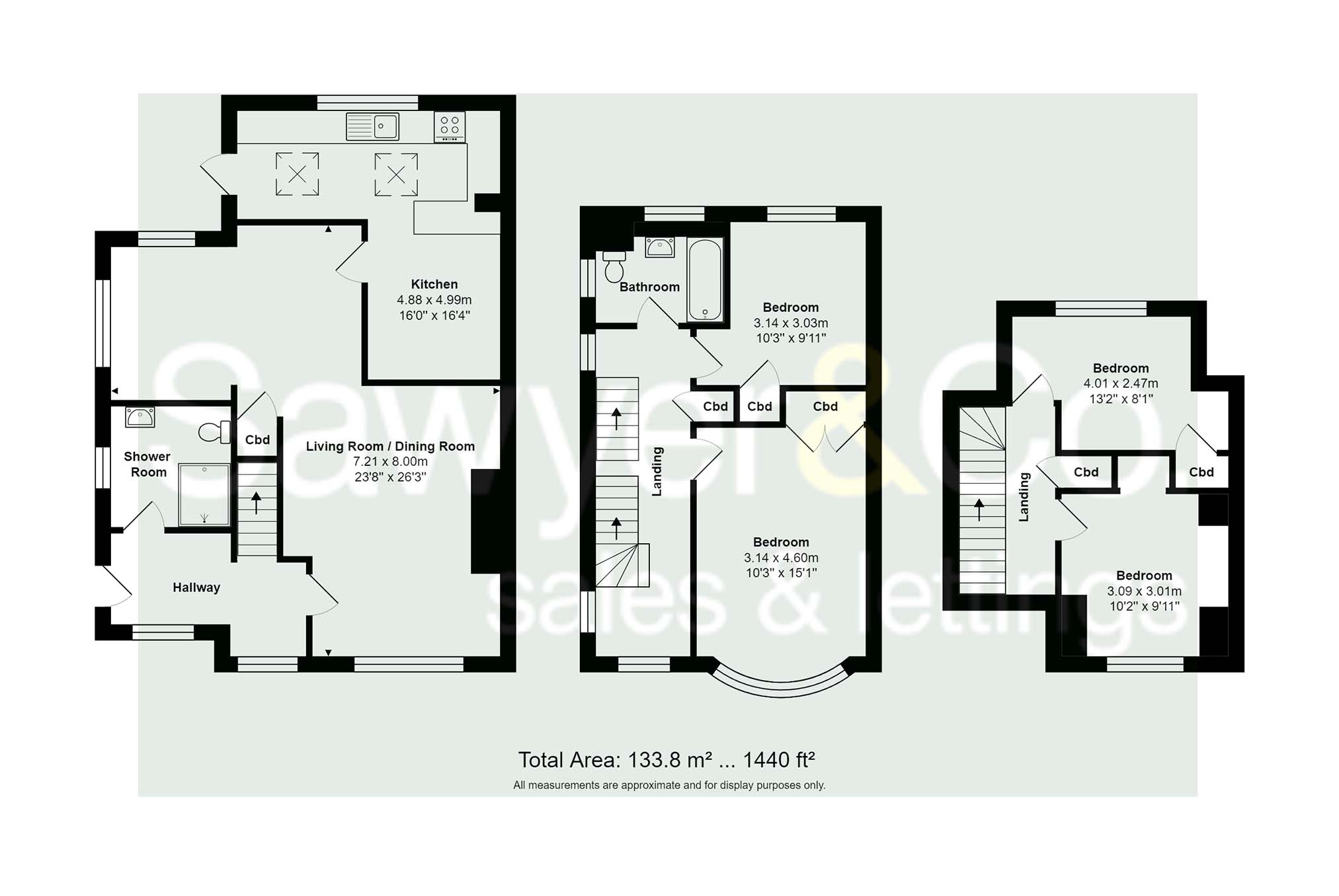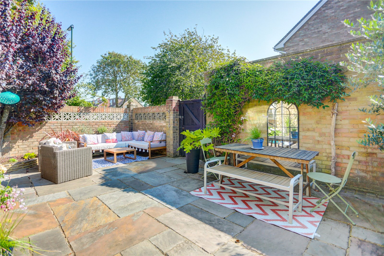 On the first floor there are two double bedrooms, both with handy built-in cupboard space, and a family bathroom. The remaining bedrooms are located on the top floor. The rear patio garden is well-maintained and faces south, making it a brilliant suntrap. The property benefits from a garage and driveway.
