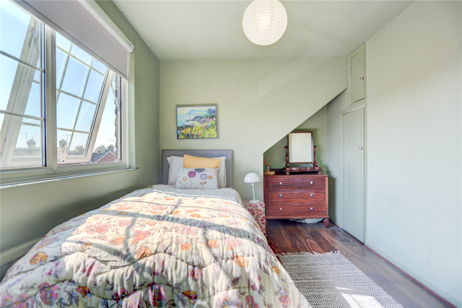 This family home is set back from the road and has been refurbished to a high standard. An open plan living/dining area, a separate kitchen/breakfast room and a shower room are located on the ground floor. The kitchen has bespoke sleek white worktops and unique navy cupboards with silver hardware, while the breakfast/family area presents pretty sage panelling. The living space boasts a large floor to ceiling mullion sash window and original wood flooring.